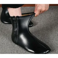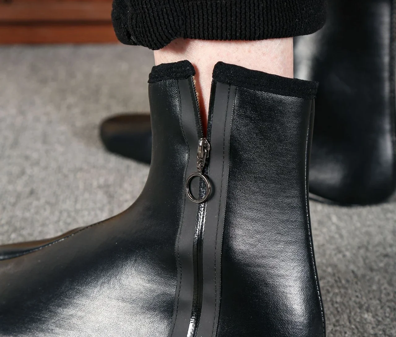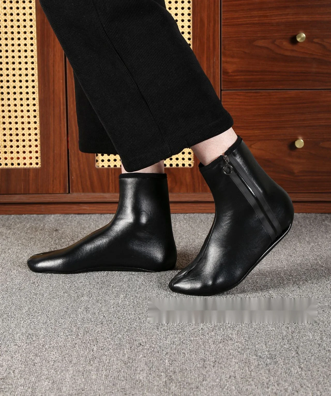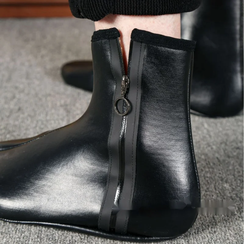 1 Pair Zipper Black Winter Stockings Adult Men and Women Middle High Tube Fleece-lined Thick Keep Warm Leather Floor Room Socks