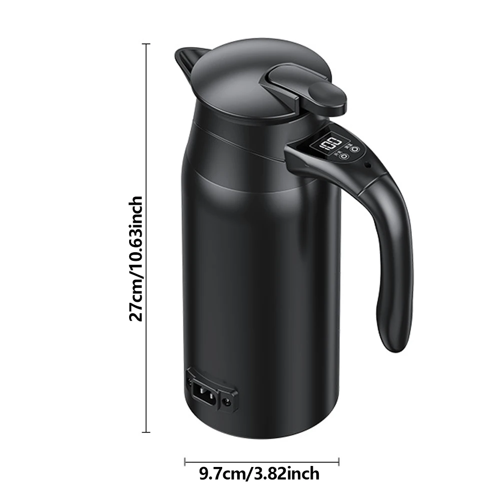 Made from food-grade 304 stainless steel (mother and baby-safe) for heat retention, corrosion resistance, and easy cleaning. Includes a press-to-open lid and 0.9m car charger cable for plug-and-play convenience.