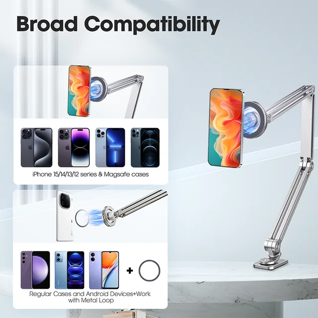 Adjust angles, steady support—works wherever your phone is. Sturdy aluminum, fits lying down or working, free your hands effortlessly.