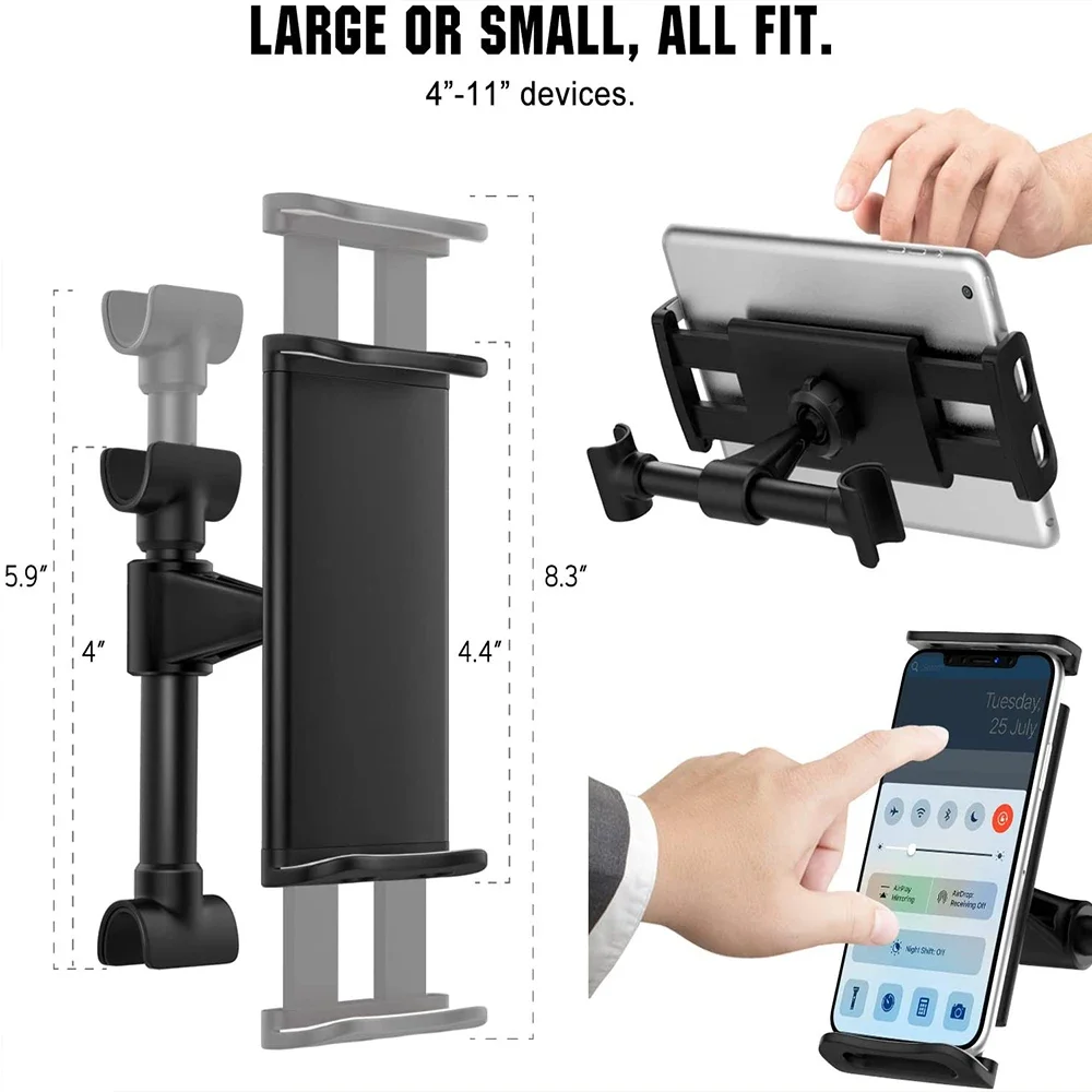 Telescopic Model: This Tablet Car Headrest Mount is completely compatible with all 6″-10.5″ Tablet and all 4.5″-8″ Cell Phones etc.