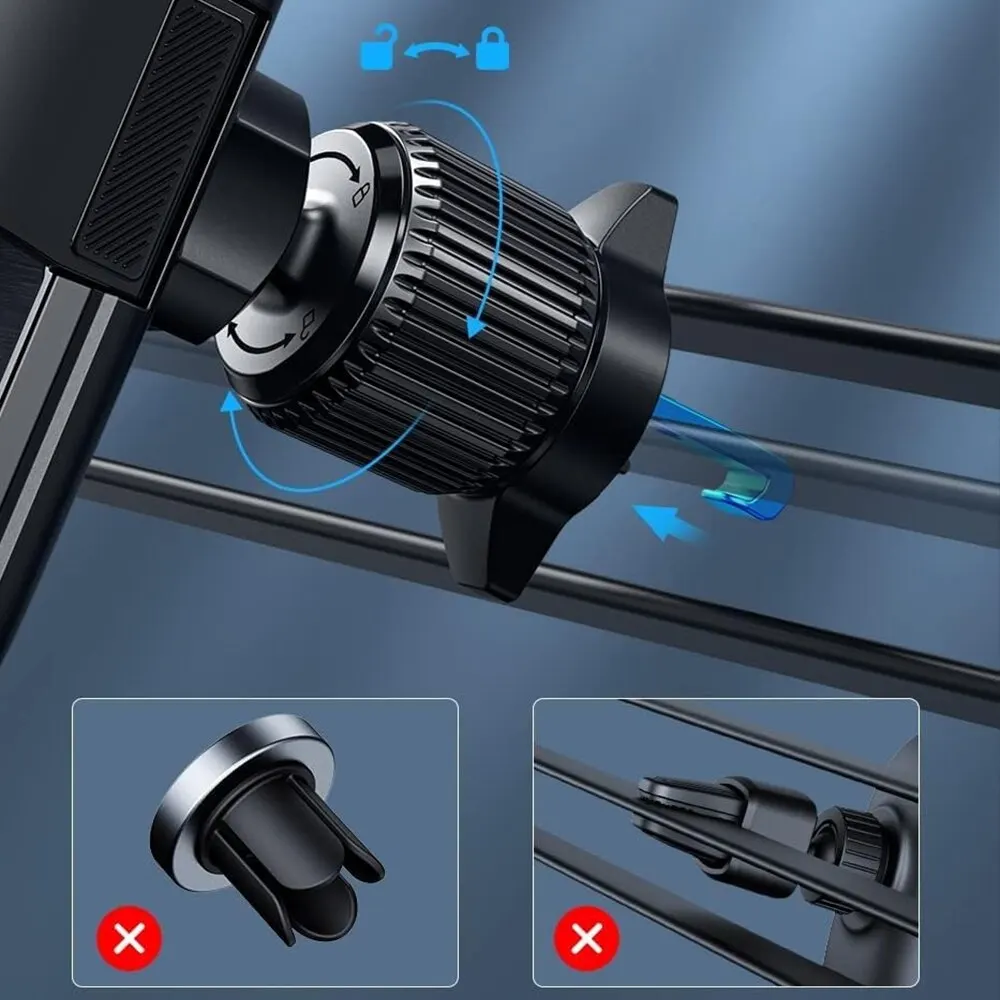 • 360° Rotating Air Vent Mount :The universal car tablet stand can rotate 360 degrees, allowing you to adjust the angle of your tablet for optimal viewing while driving.