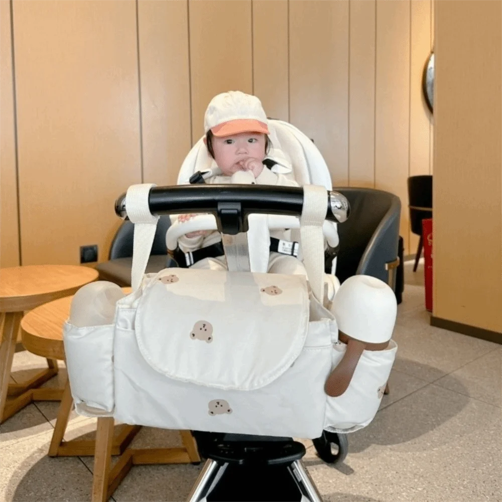 Universal Cartoon Stroller Organizer Bag Bear Cloth Stroller Hanging Bag Diaper Bottle Large Capacity Baby Stroller Bag Outdoor