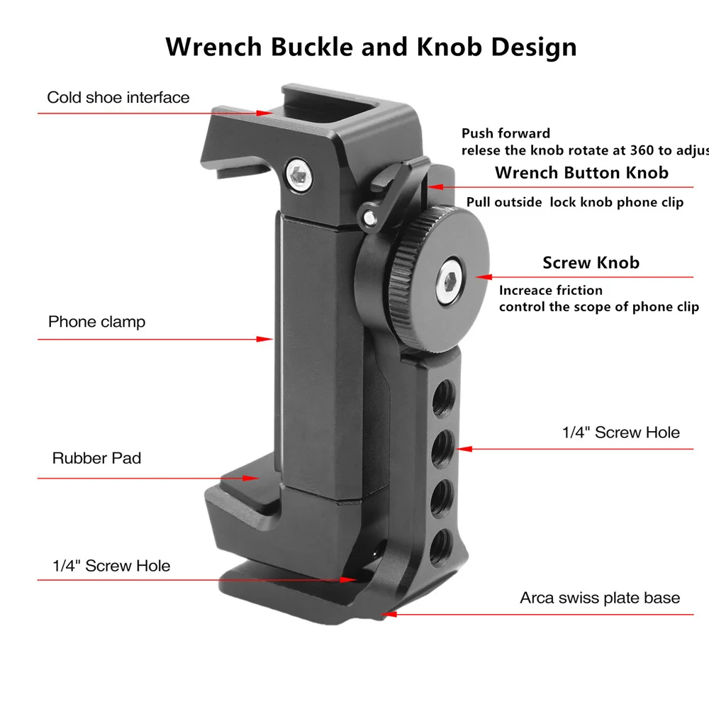– Standard 1/4 inch threaded hole to be mounted on any tripod, monopod or selfie stick.