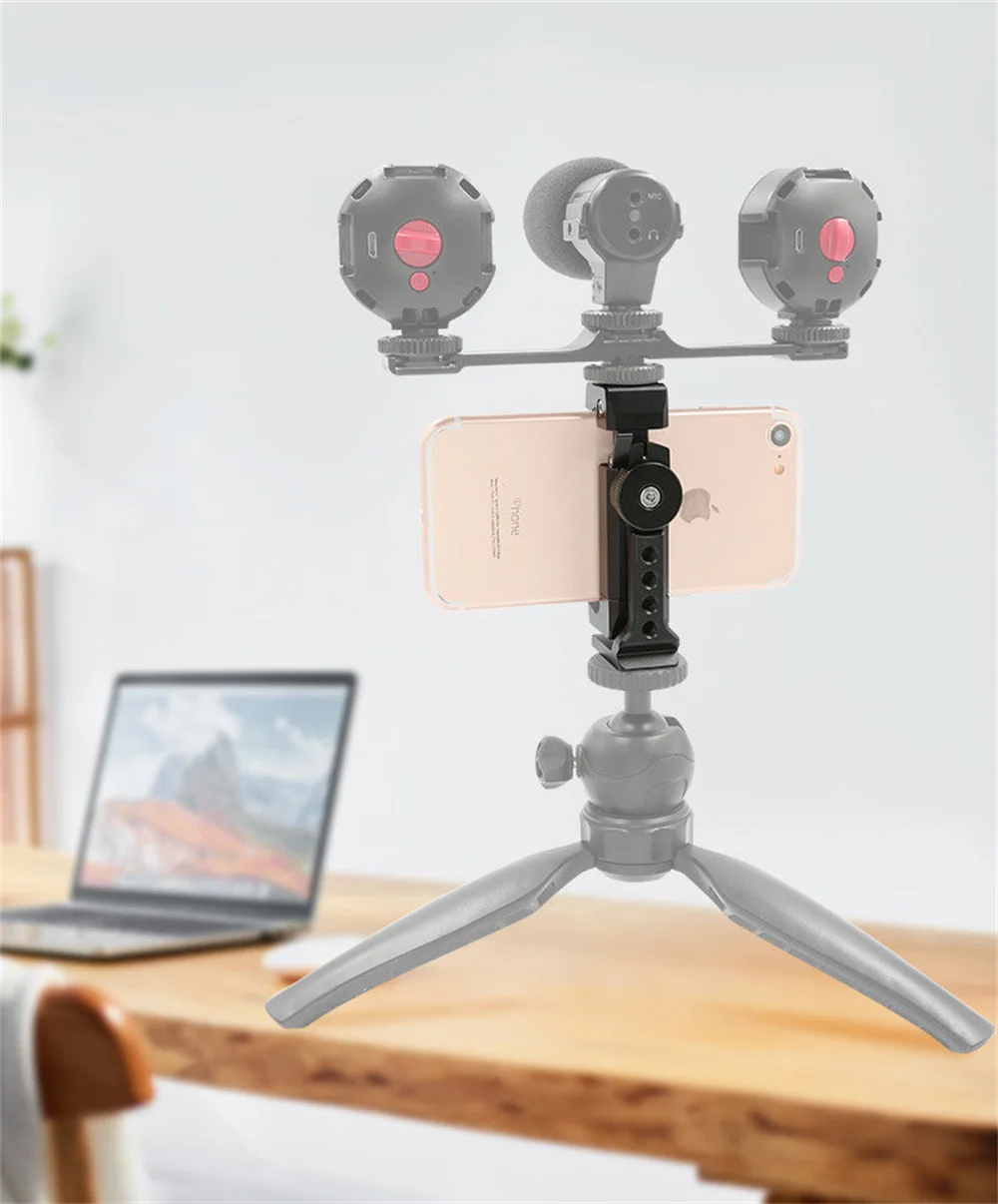 ”L”-shaped cell phone bracket, unique 360° rotation design, allows you to rapidly swit-ch in horizontal and vertical shapes and other different shooting angles can be adjusted as you like.