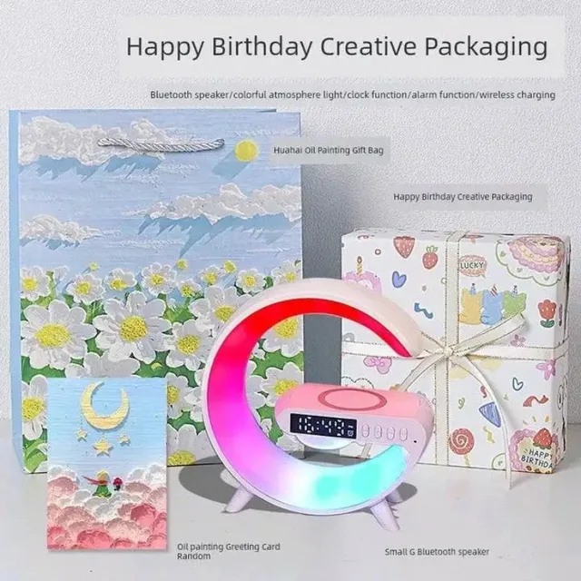 Universally Multi Functional Wireless Speaker with RGB Night Light Alarm Clock For iPhone Samsung Xiaomi Charging Station
