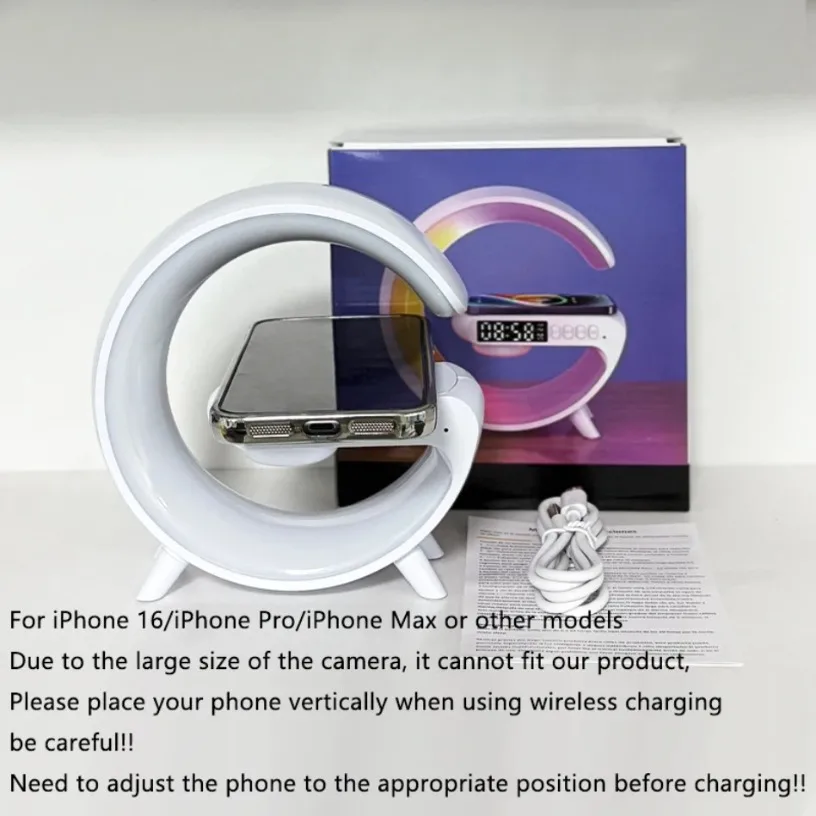 Universally Multi Functional Wireless Speaker with RGB Night Light Alarm Clock For iPhone  Samsung Xiaomi Charging Station