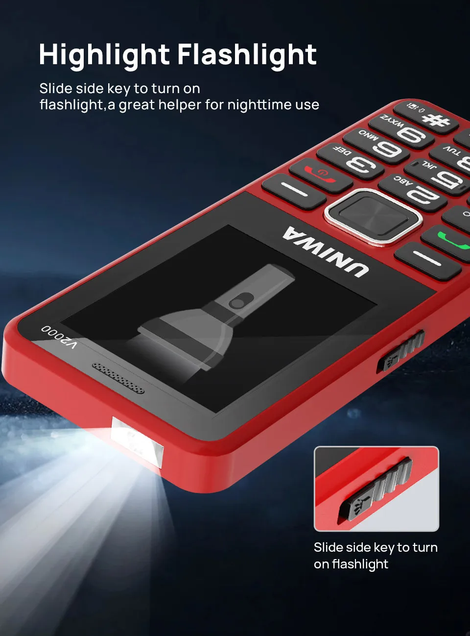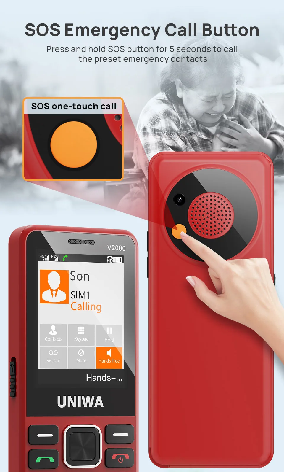 UNIWA V2000 Big Push-Button 4G Phone Dual Screen 0.3MP Camera FM Radio Keyboard 1700mAh Cellphone Support one click dialing