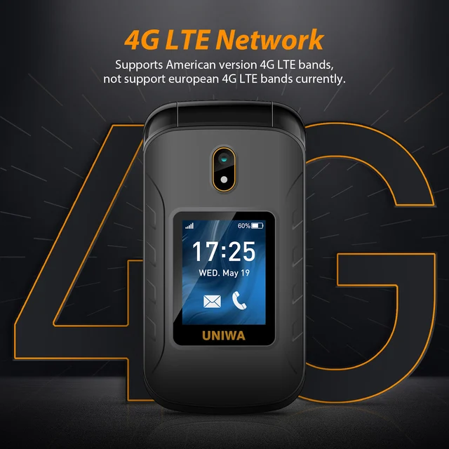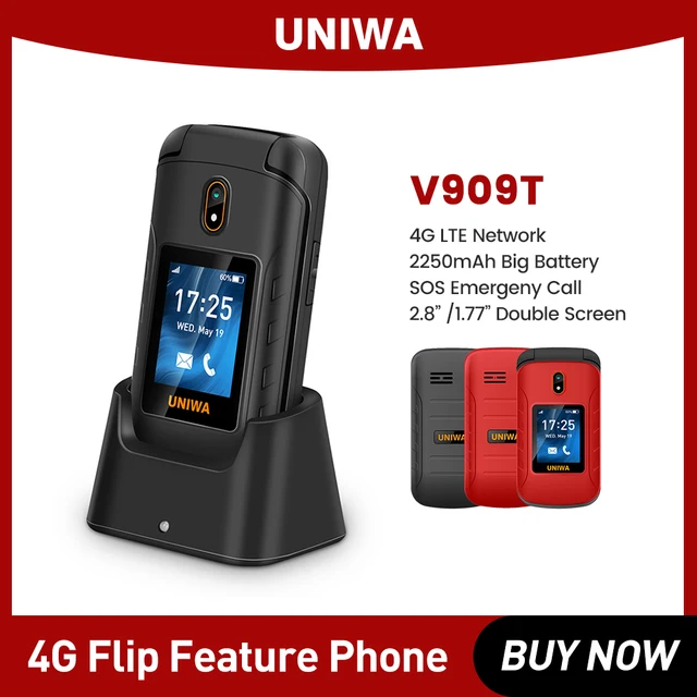 UNIWA V909T Flip Phone 4G Dual Screen Single Nano Cellphone Big Push-Button Mobile Phone for Elderly 2250mAh Russian Keyboard