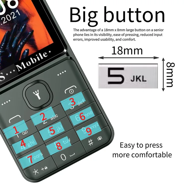 Unlocked 4 Quad Sim Senior Phone 2.8" Big Display Durable Quick Dial Flashlight Large Button Loud Voice Slim Elderly Cellphone