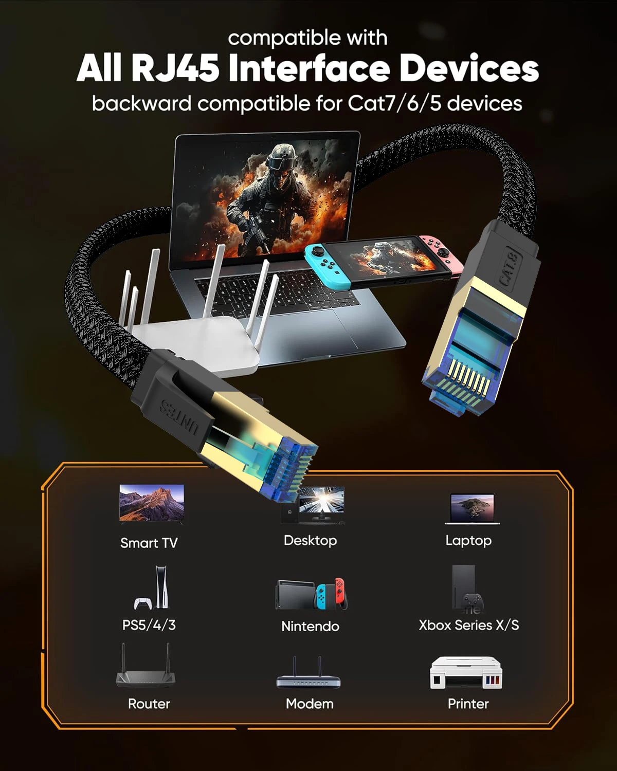 SUERIXN CAT8 Ethernet Cable RJ45 Patch Cord 40Gbps 2000Mhz High Speed Internet Cable for PS5 Laptop Router Cat 8 Network Cable