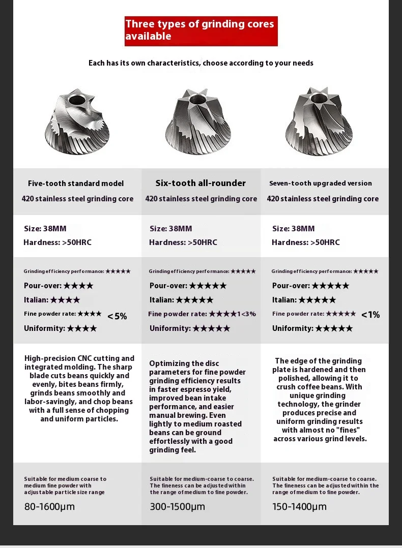 6. Upgraded machine compartment with large capacity, capable of grinding approximately 25g of coffee beans at a time;
