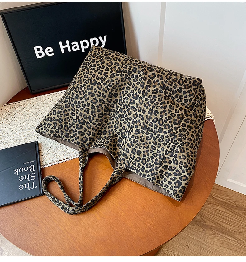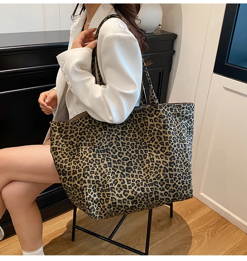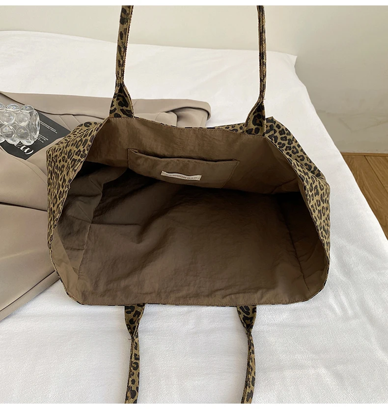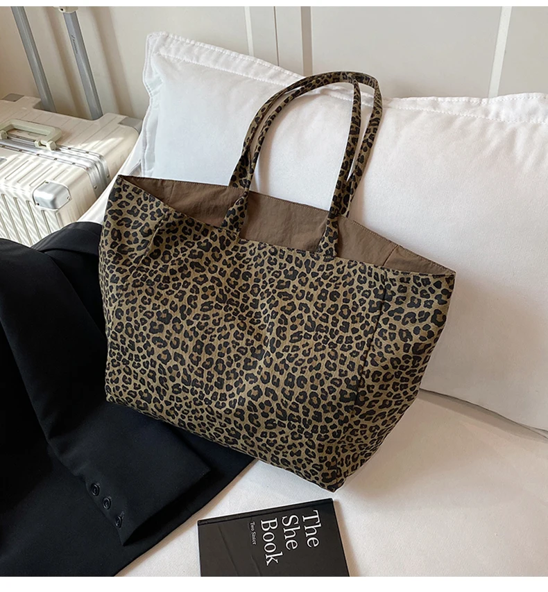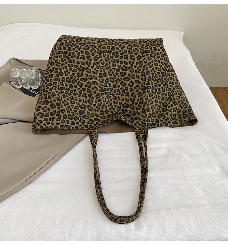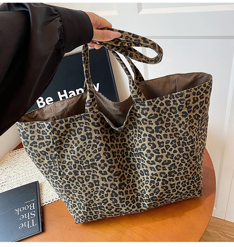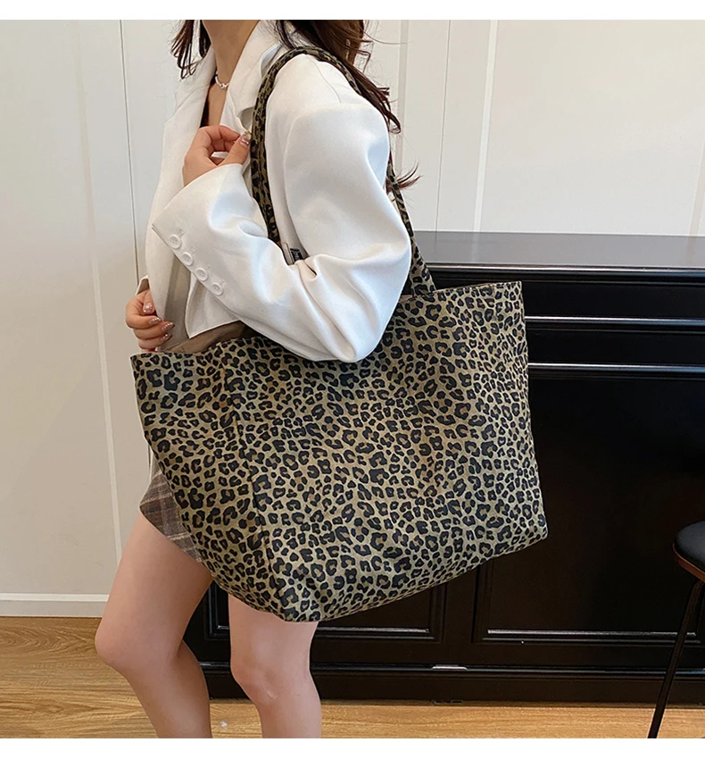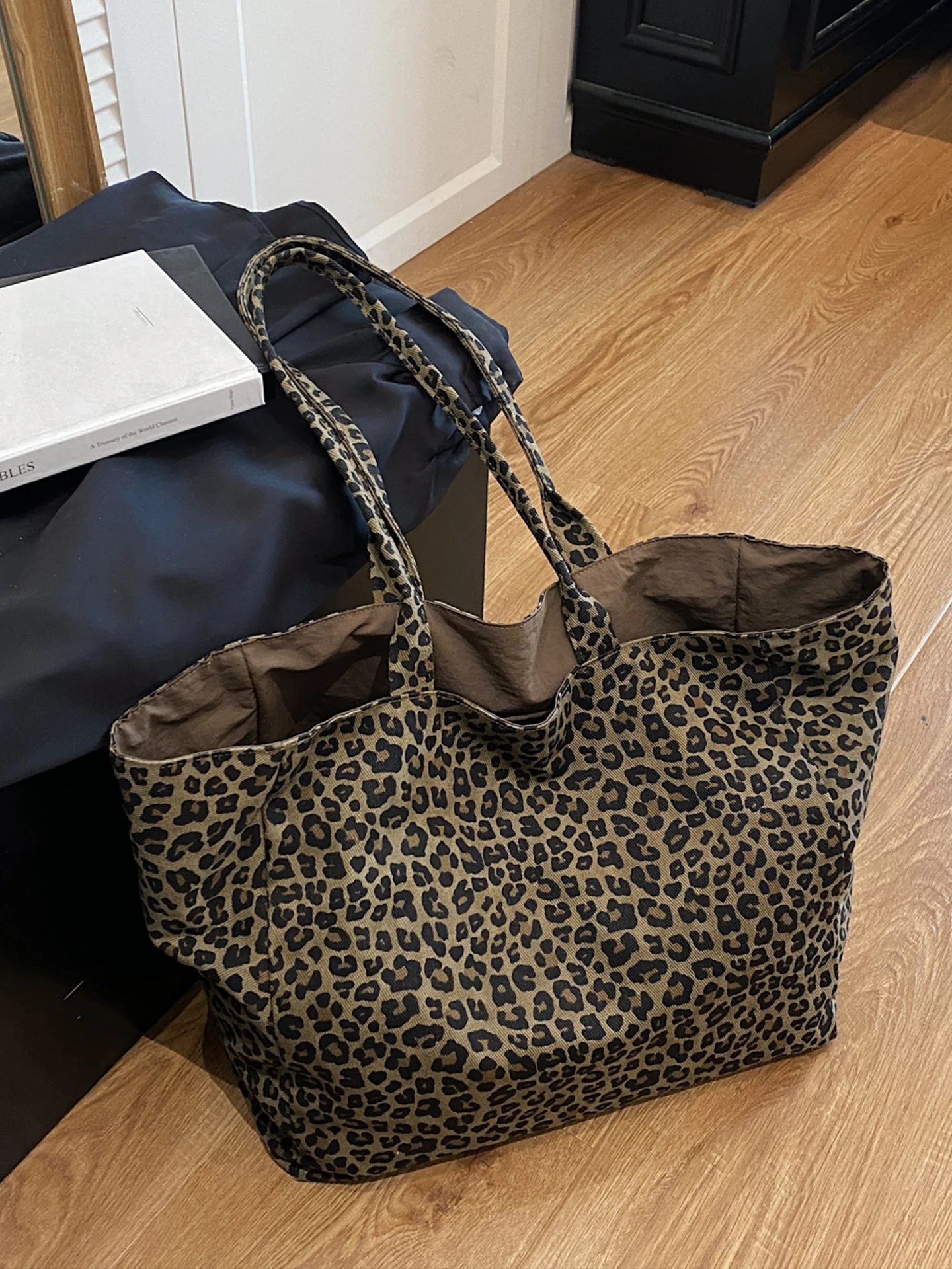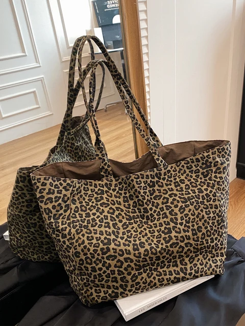 Featuring a trendy leopard print, this tote bag adds a touch of style to any outfit.