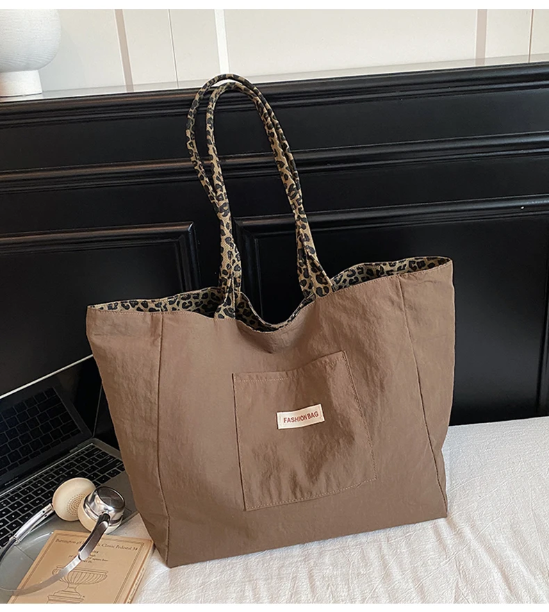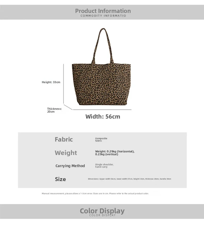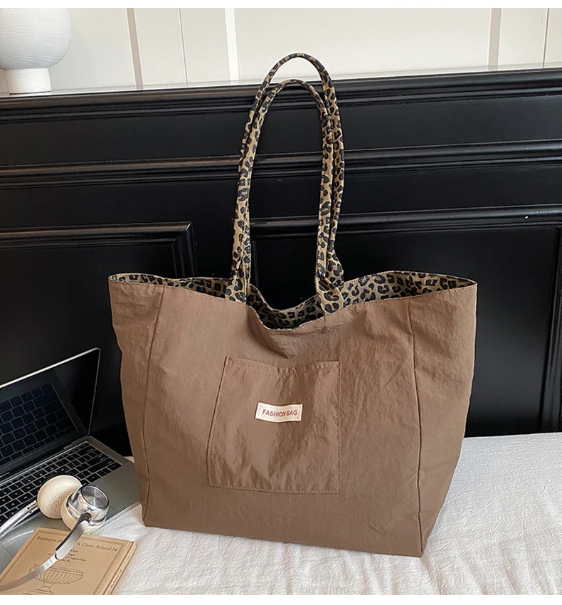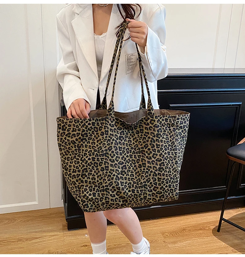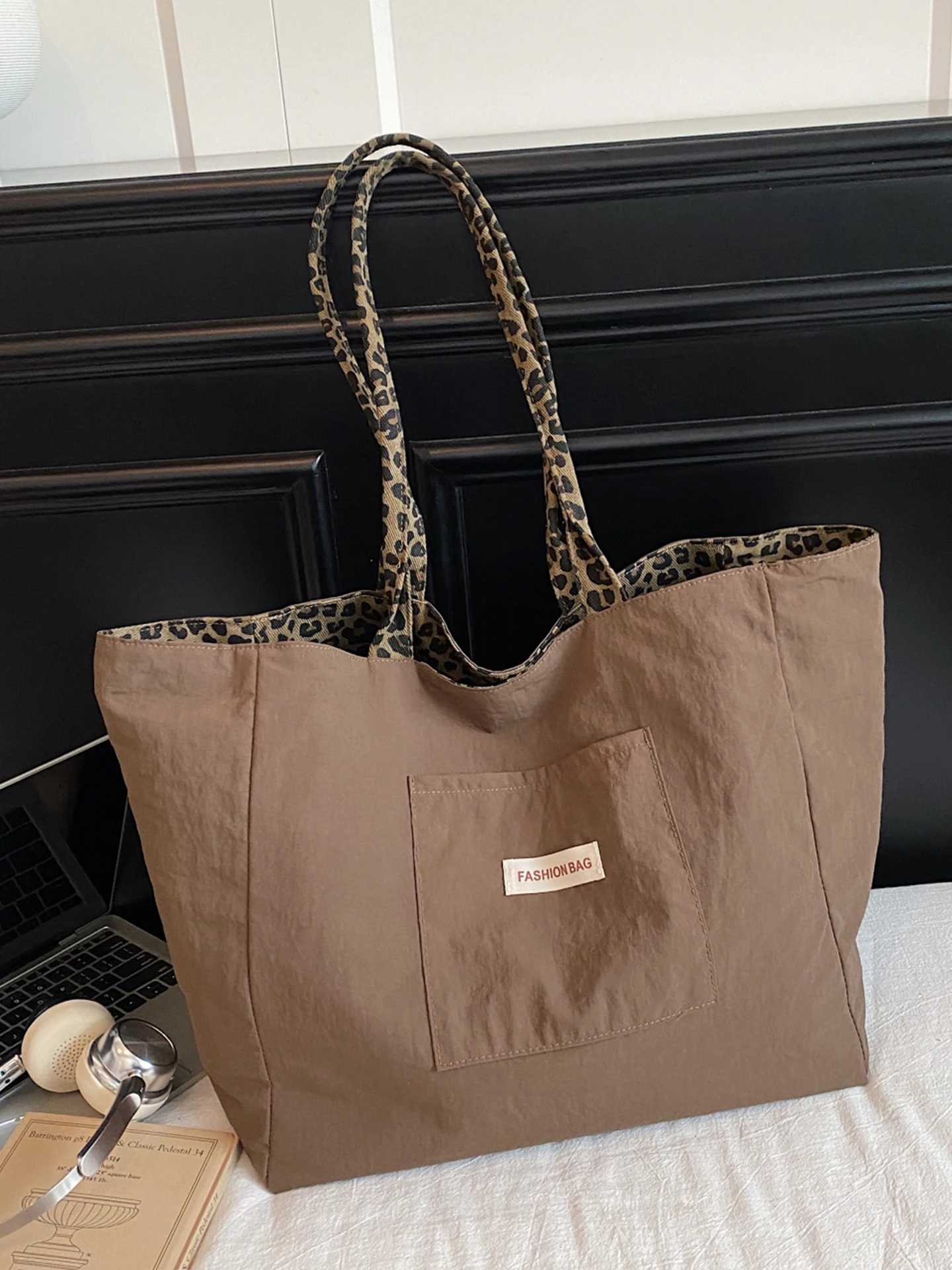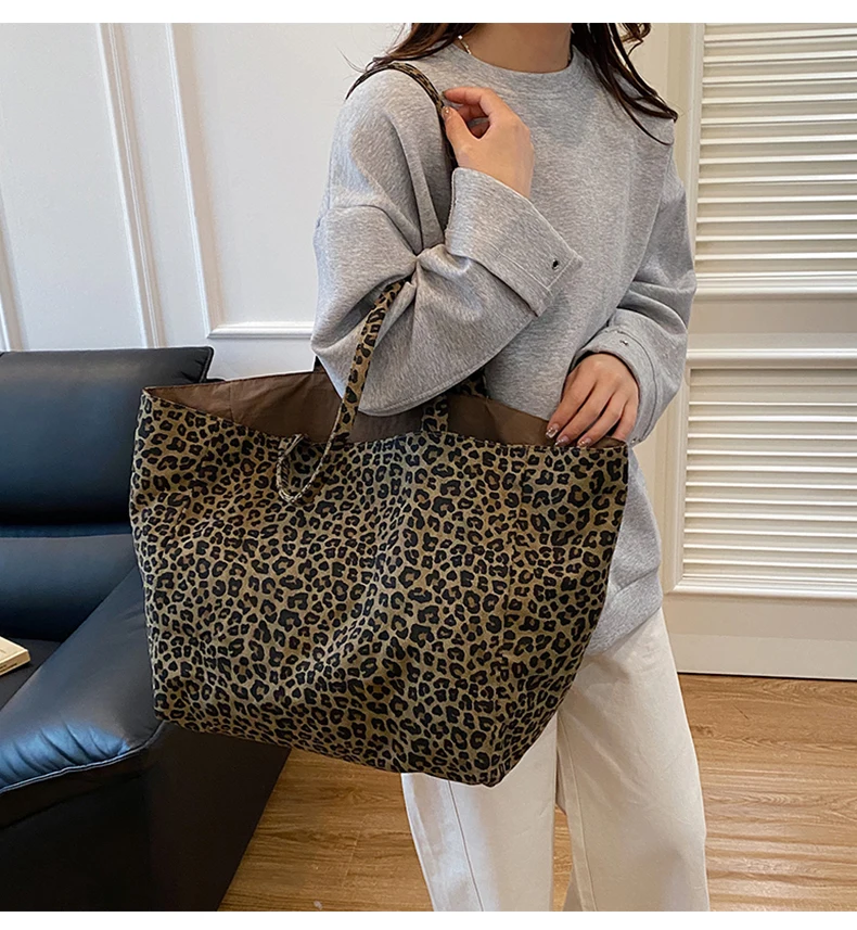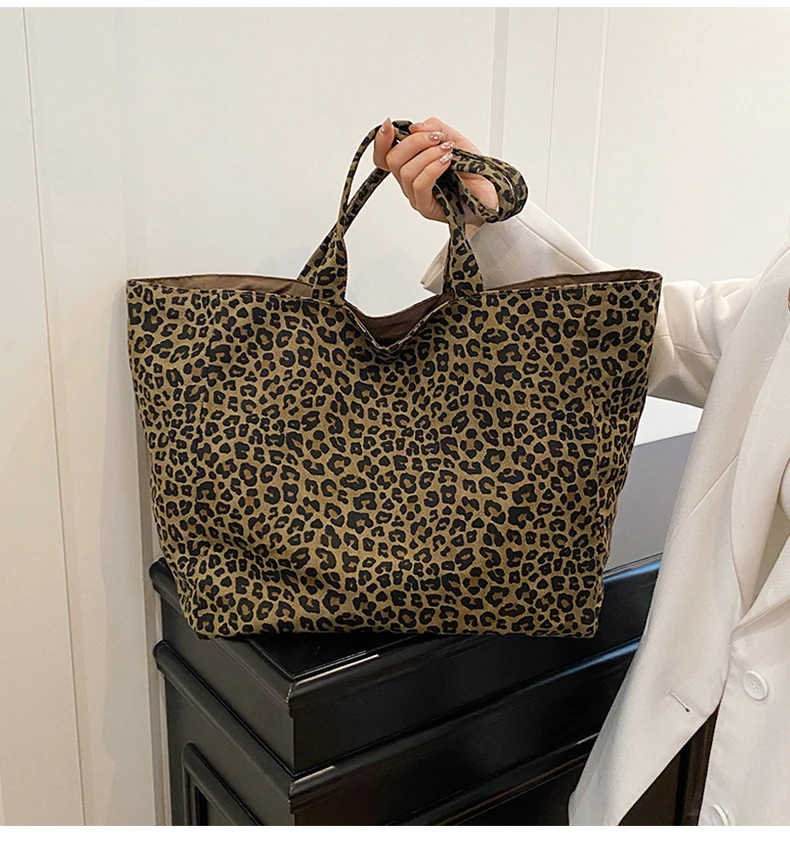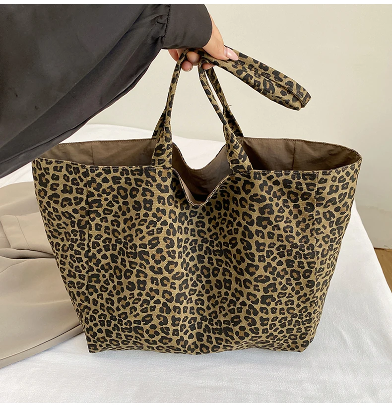 Featuring a trendy leopard print, this tote bag adds a touch of style to any outfit.