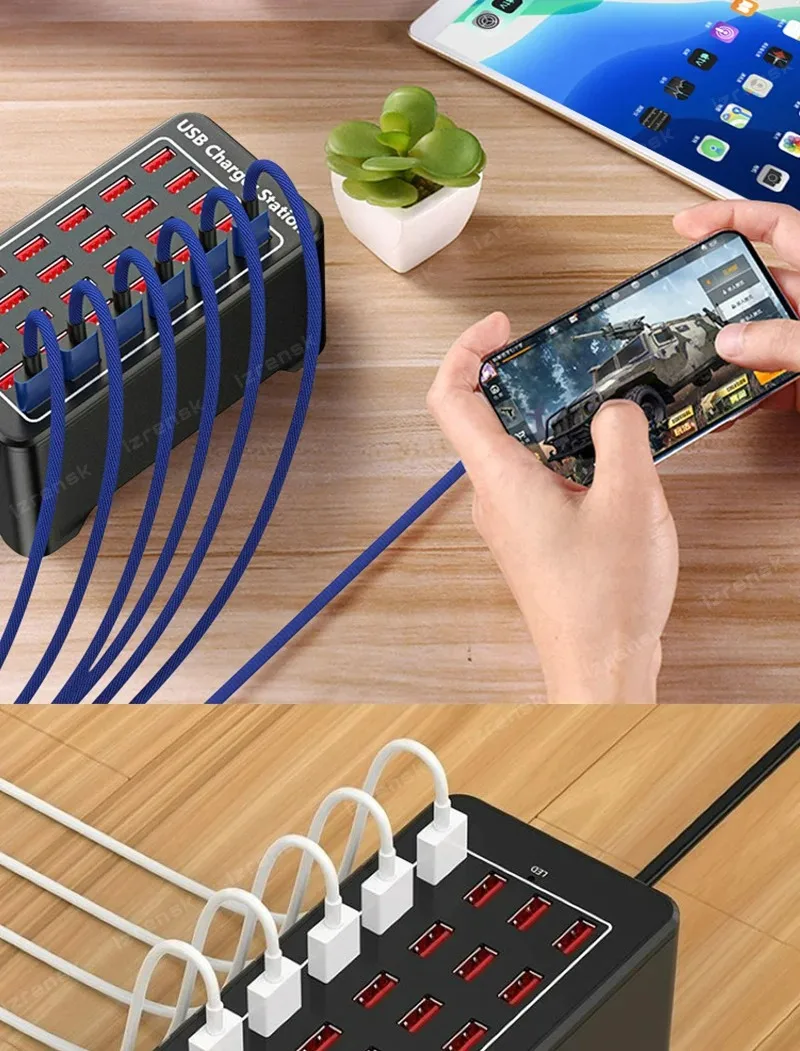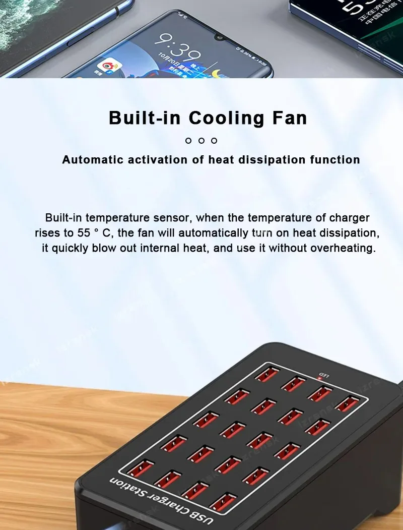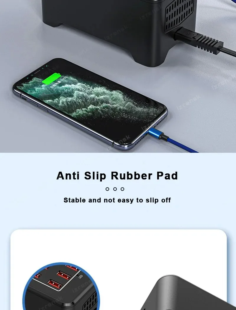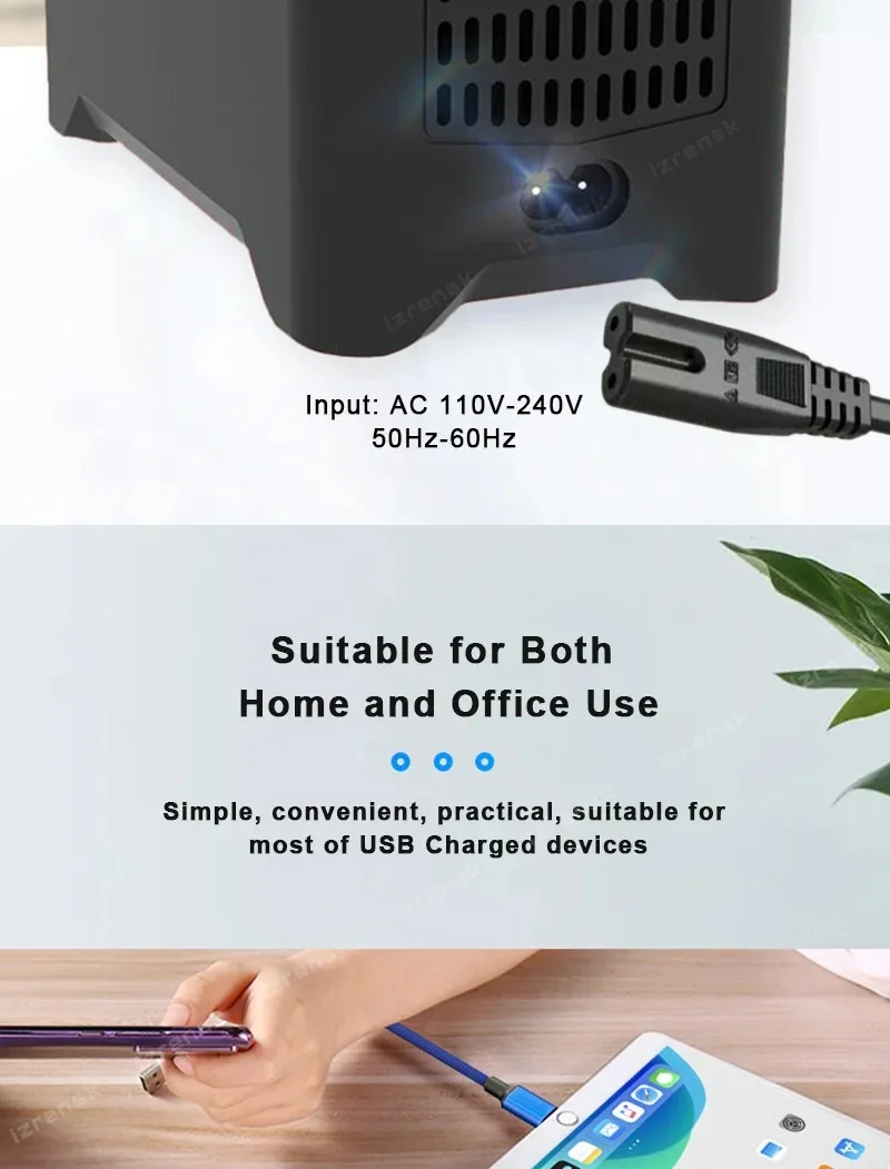 The USB charging station uses the most advanced automatic control technology. Built-in safeguards against overcharge, overcurrent and overvoltage protection, temperature control, foreign object detection. Guards your device battery against overcharge damage.