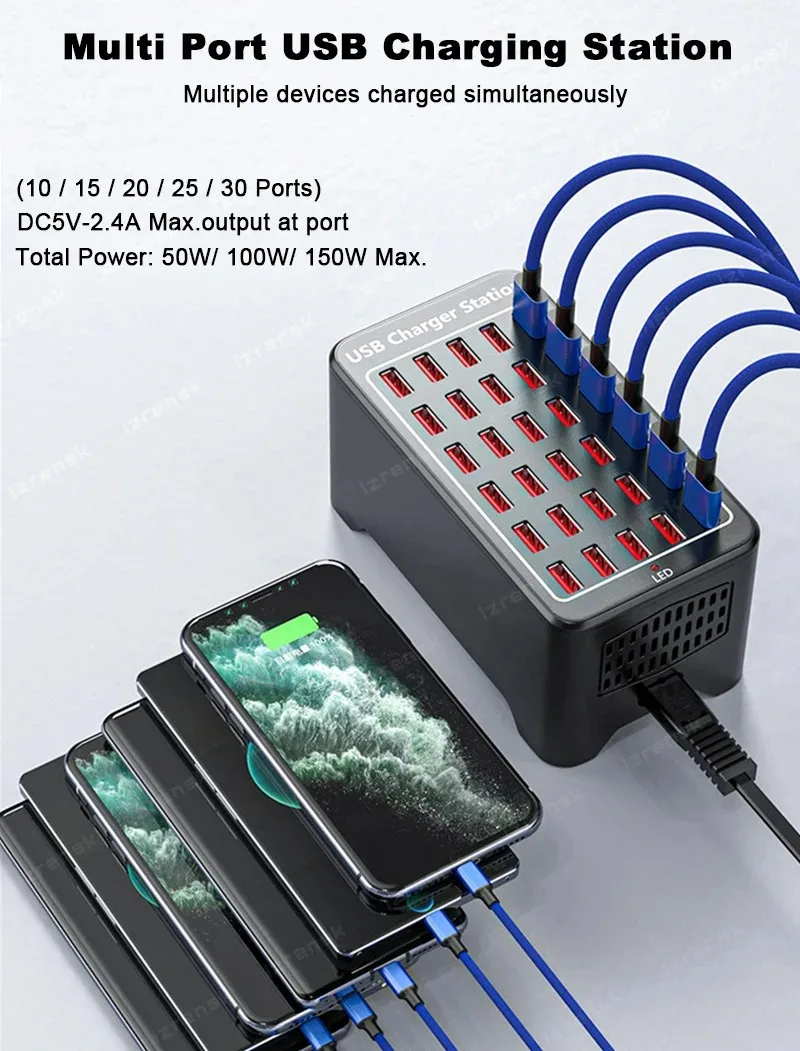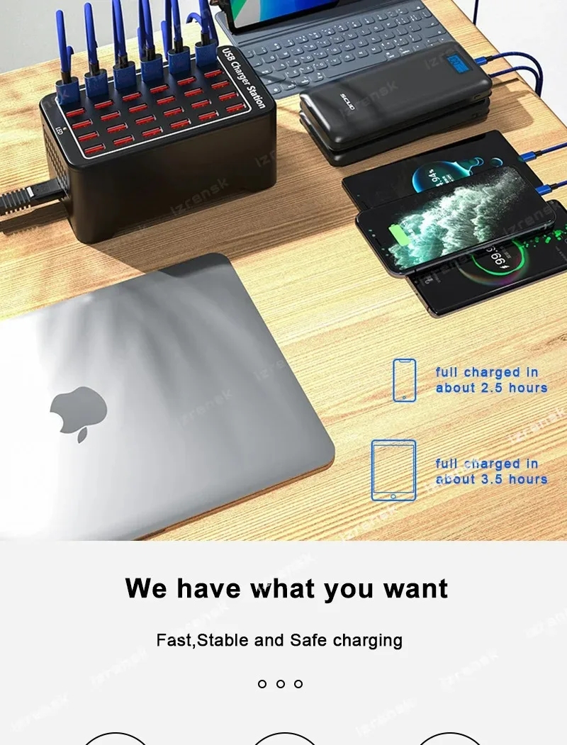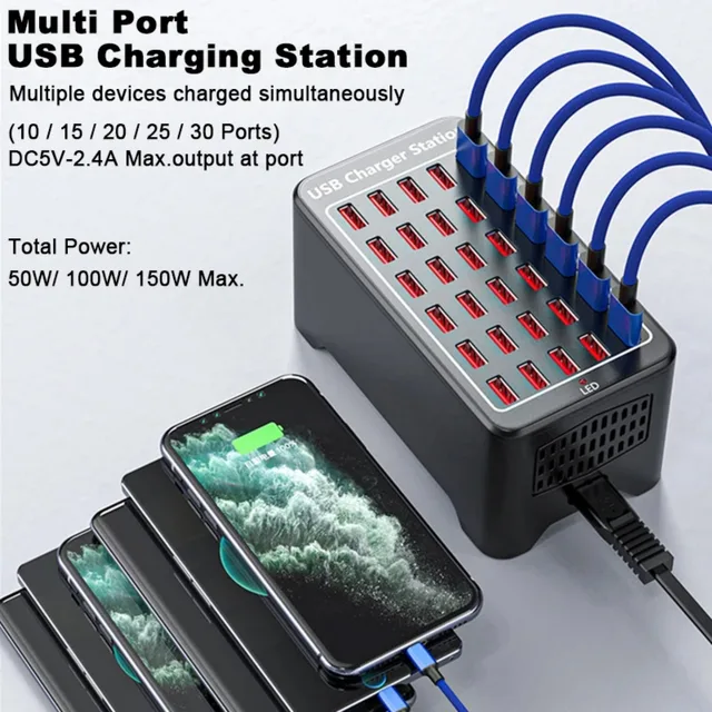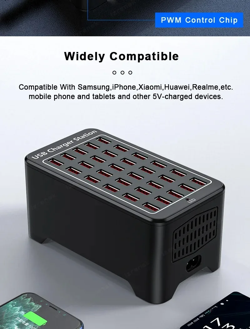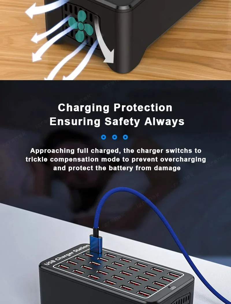The USB charging station uses the most advanced automatic control technology. Built-in safeguards against overcharge, overcurrent and overvoltage protection, temperature control, foreign object detection. Guards your device battery against overcharge damage.