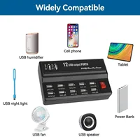 -48%12-Port USB Charging Station, Universal Multi-Device Charger Hub with 5V 12A 60W Output, Power Adapter with European Plug for Cell Phones and Tablets, 110V/220V Compatible, Compact Desk Design