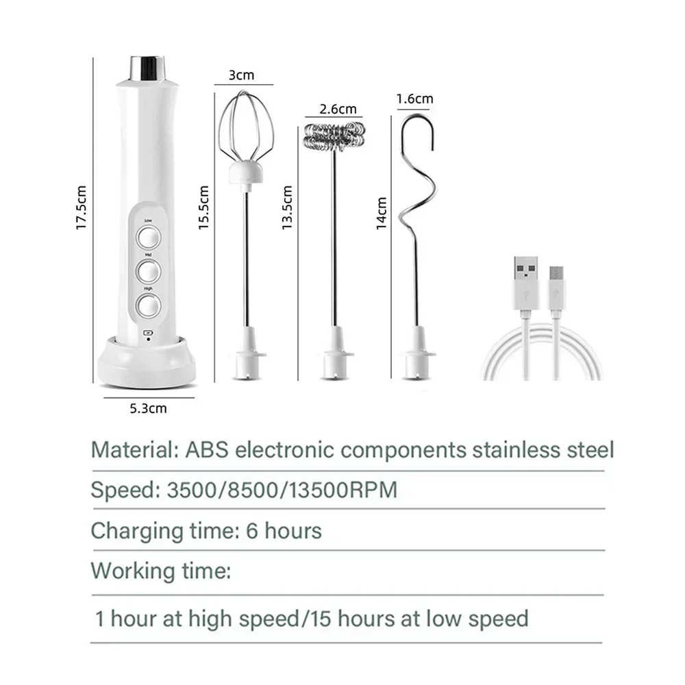 【EASY TO CLEAN】Our coffee frother is made of a non-slip ABS plastic handle and food-grade 304 stainless steel whisks, simply put the whisk head into clean water and switch on to achieve instant cleaning.