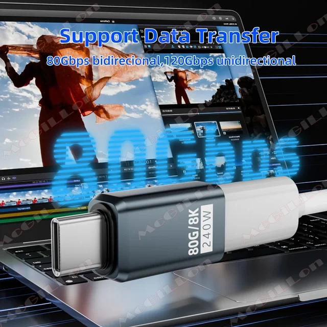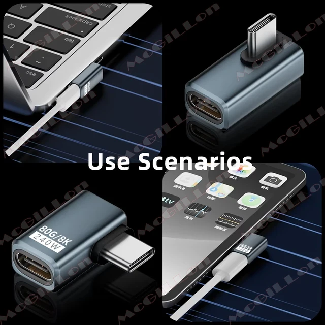 USB4 V2 90 Degree Type C Angle Adapter 80Gbps Thunderbolt 5 4 3 Elbow Adapter 240W USB-C Cable Connector 40Gbps for MacBook Air