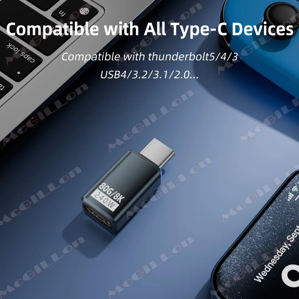 USB4 V2 90 Degree Type C Angle Adapter 80Gbps Thunderbolt 5 4 3 Elbow Adapter 240W USB-C Cable Connector