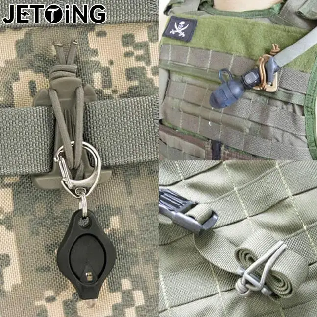 Secures webbing, cords, wires, excess materials