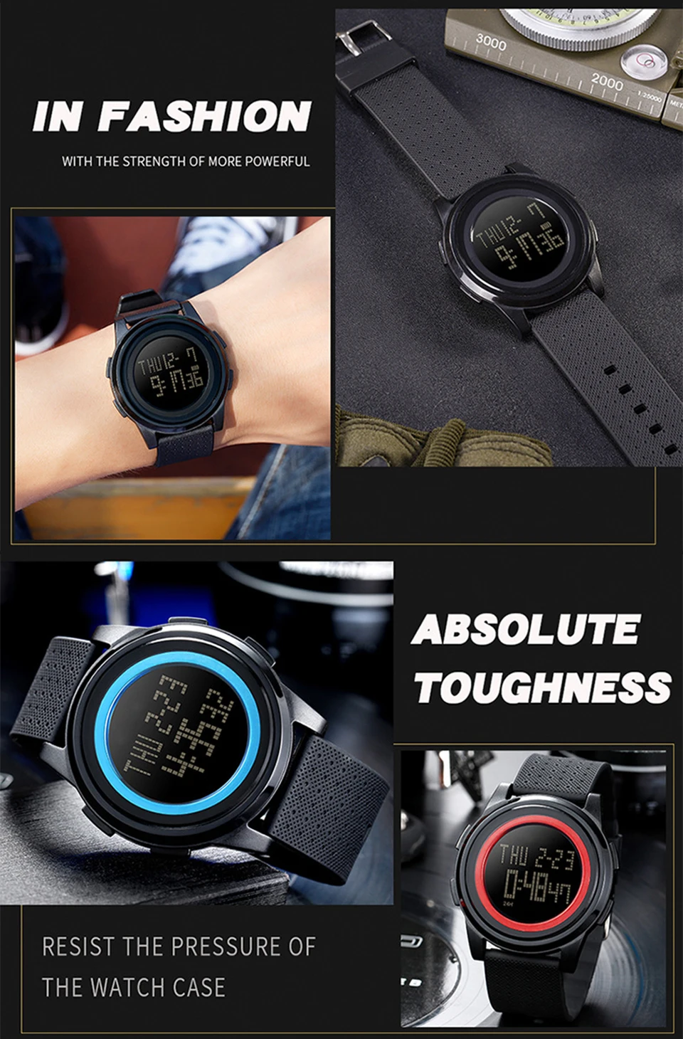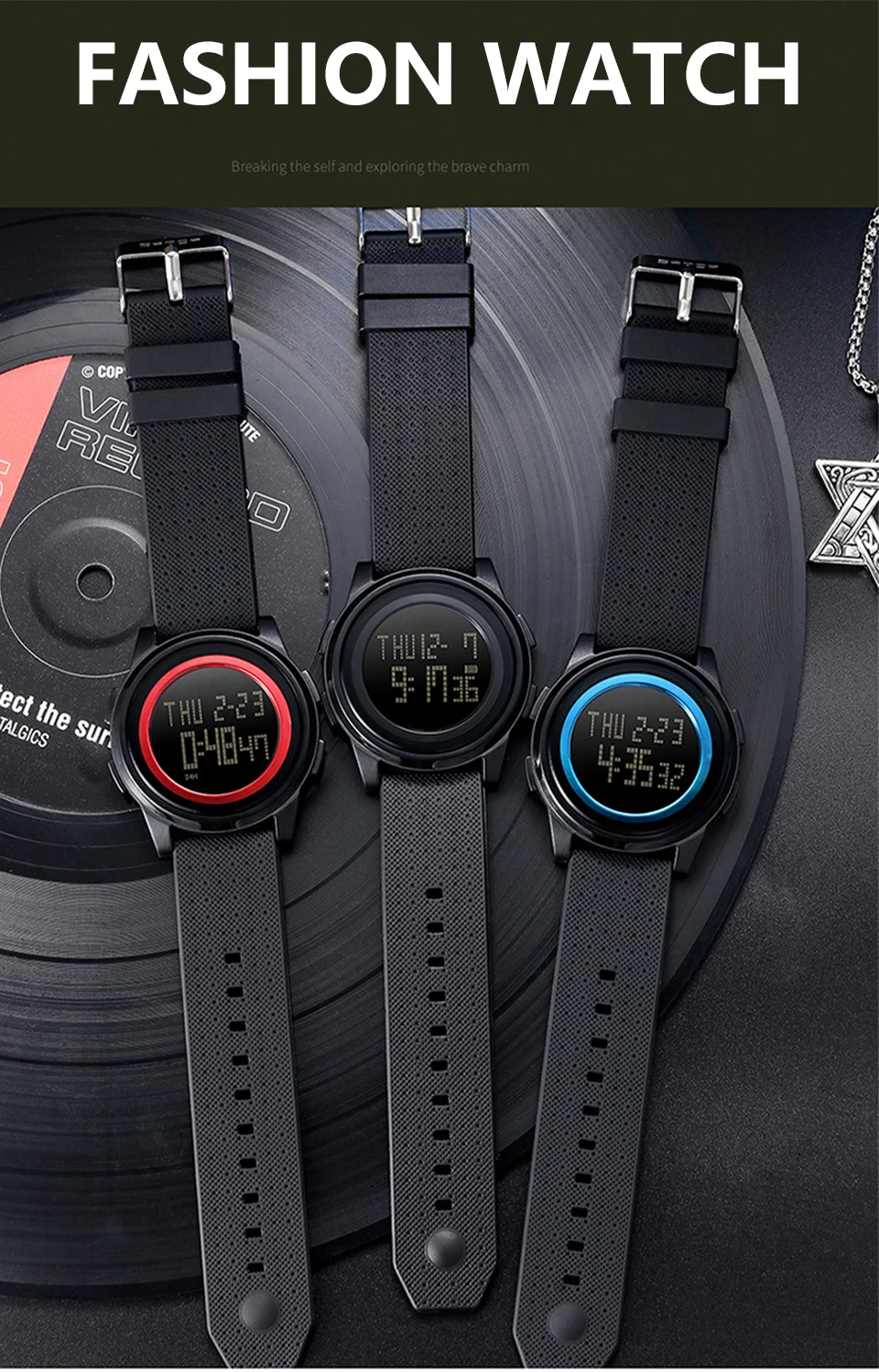Square Students Watch Boys and Girls Simple 3 Bar Waterproof Sports Watches Silicone Strap Candy Color Creative Dial Kids Clock
