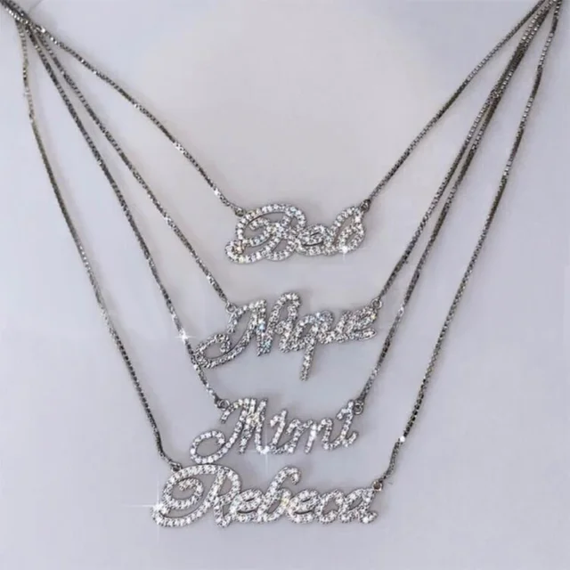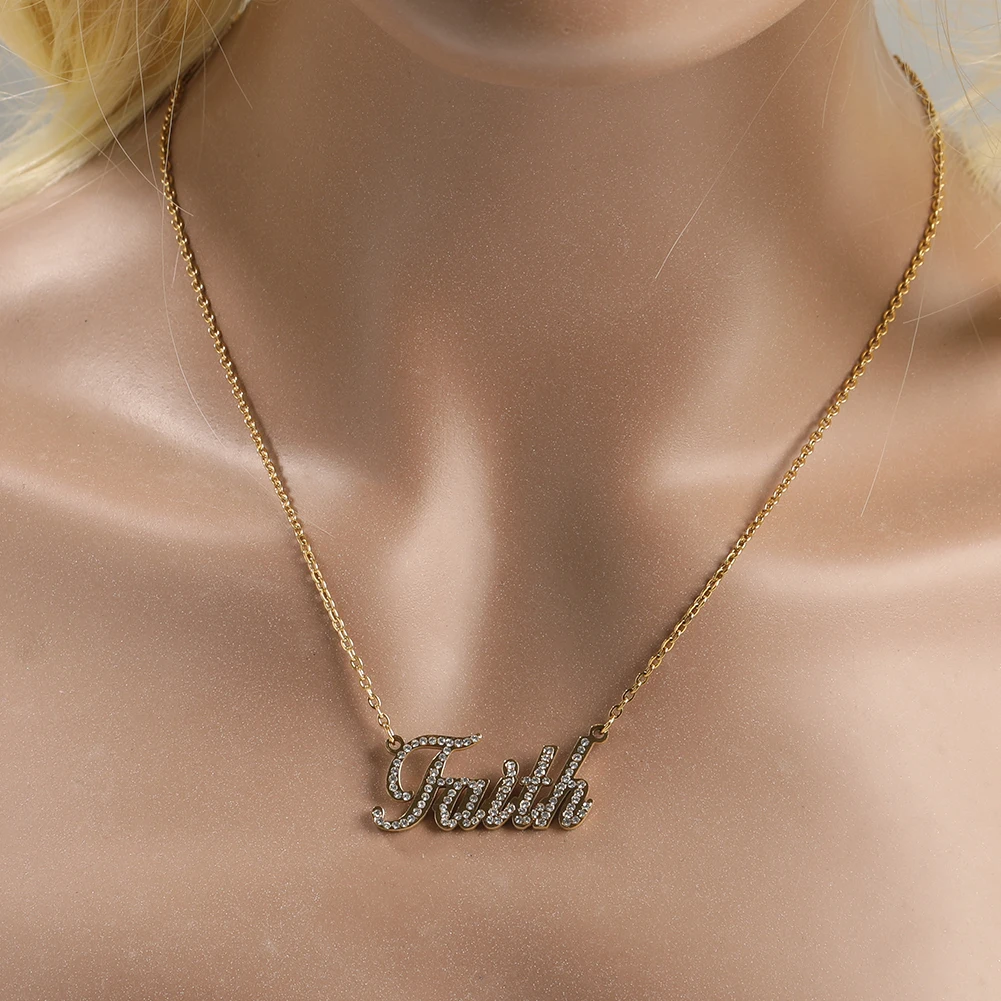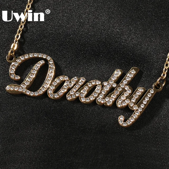 UWIN Custom Titanium Steel Name Necklace With Rhinestones for Women Personalized Name Pendant Choker Fashion Jewelry Accessories