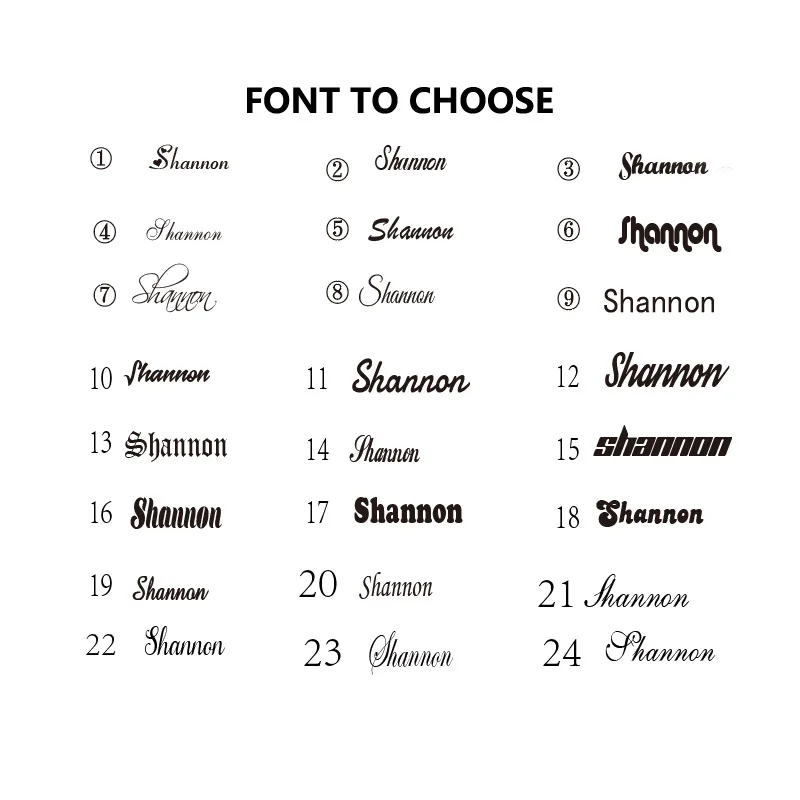 Step 2, choose the font from the page and contact us or leave us message the name and font you want.