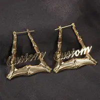 Uwin Hiphop Jewelry Stainless Steel Bamboo Hoop Earrings Customize Name Earrings Big Trendy Fasshion