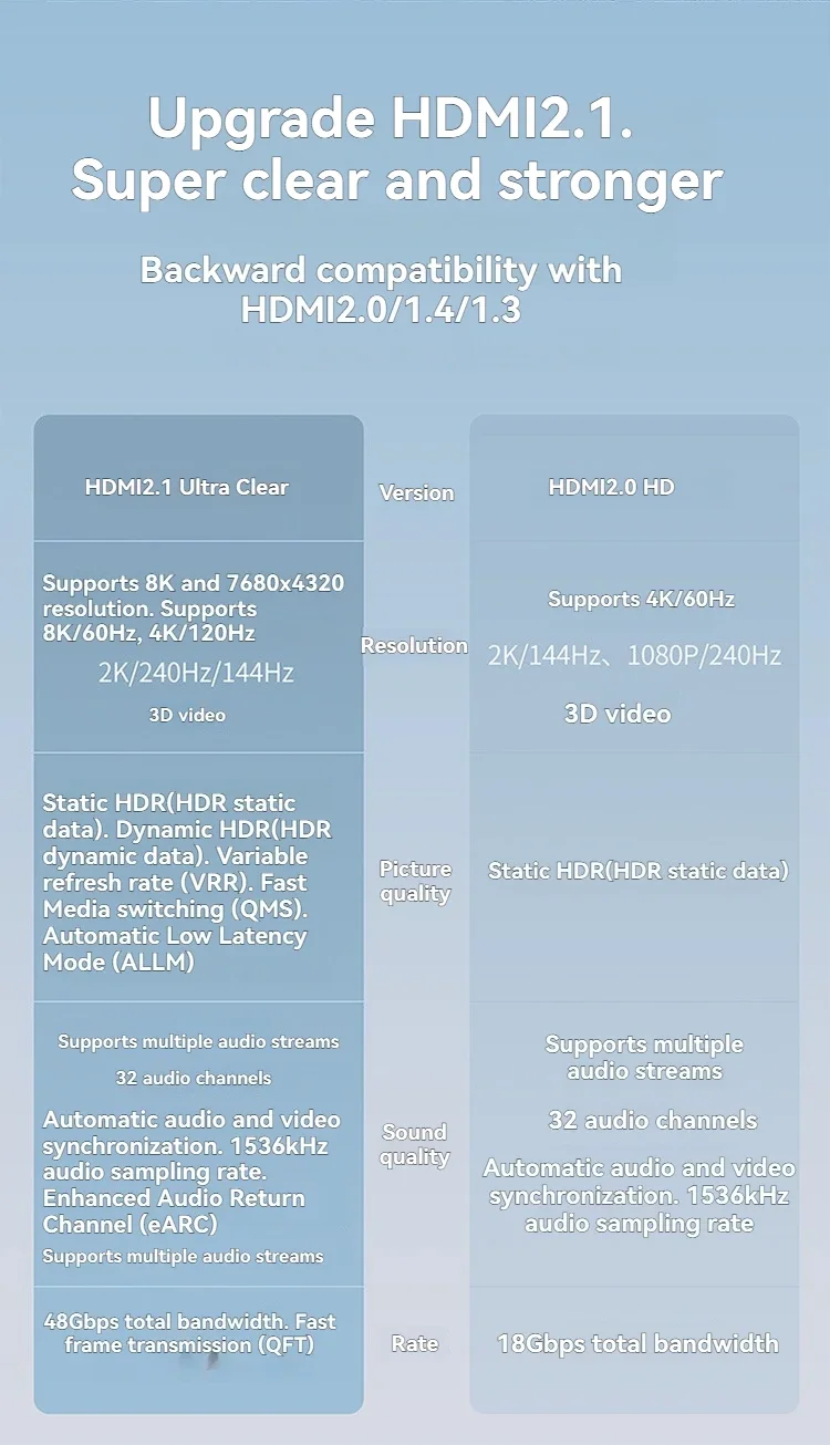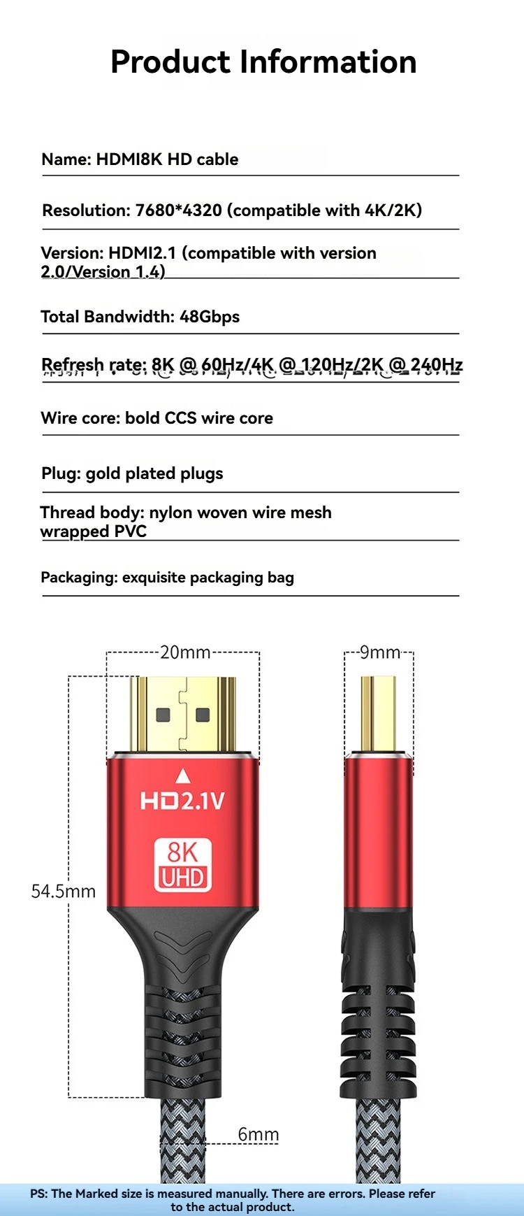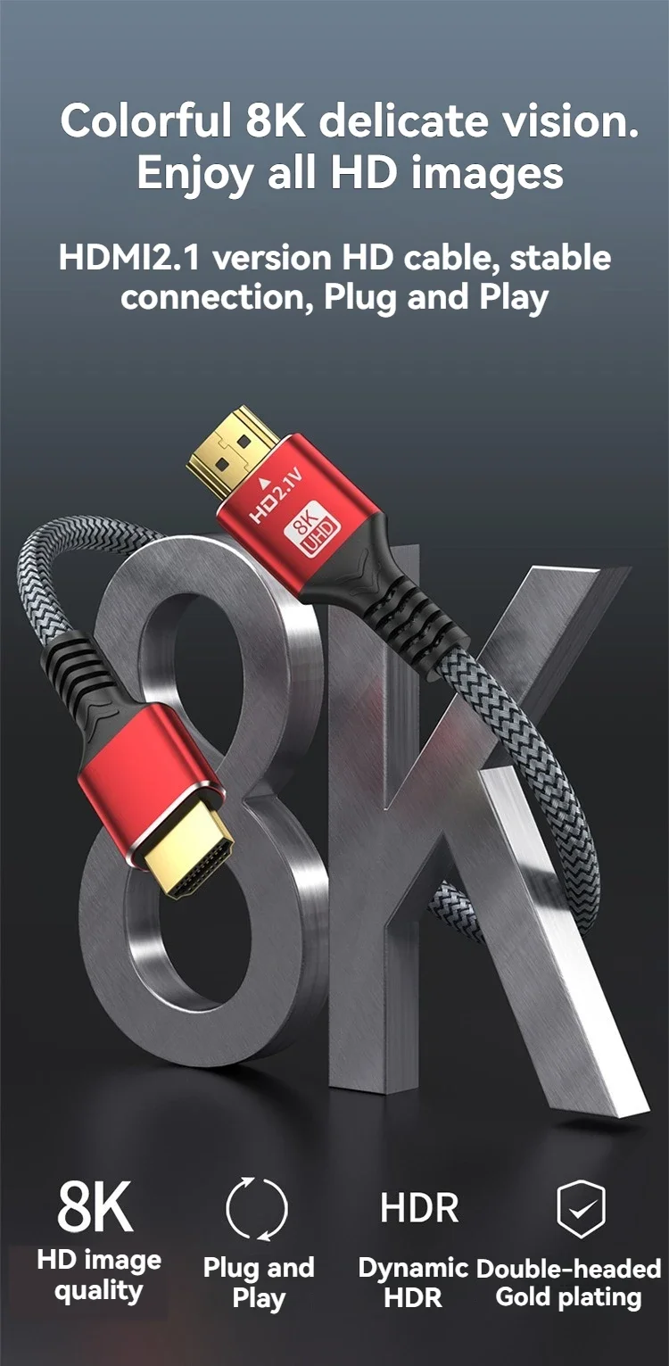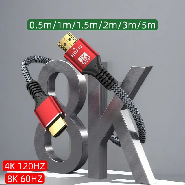 8K HDMI 2.1 Cable 4K@120Hz 8K@60Hz 48Gbps Adapter For EARC ARC HDCP Ultra High Speed Video Cable PC Laptop Projector HD TV