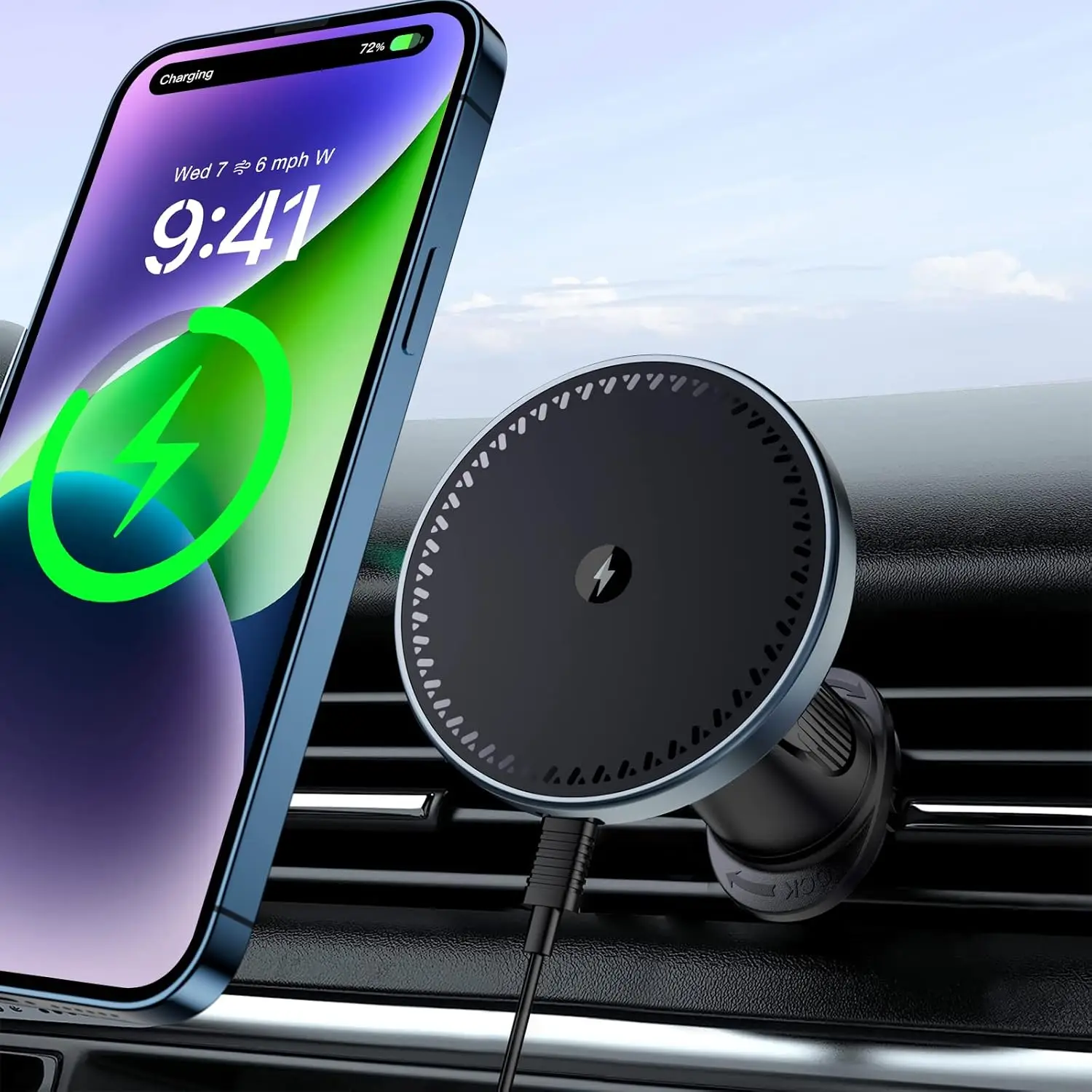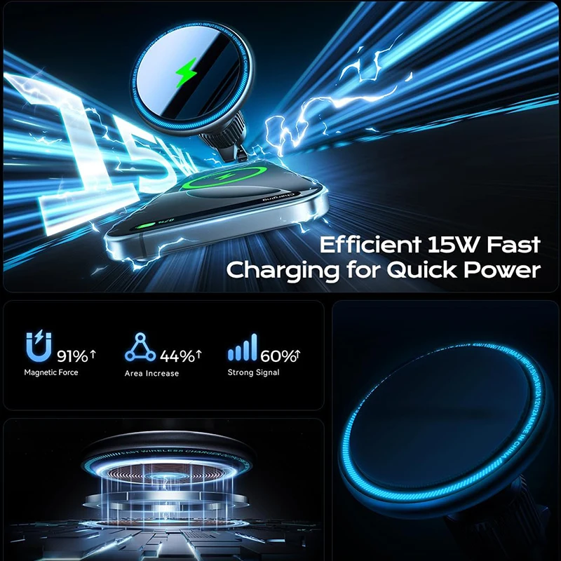UYUXIO 15W Magnetic Wireless Car Charger Air Vent  Fast Charging Car Mount Phone Holder with Magnet for iPhone 16 15 14 13 12