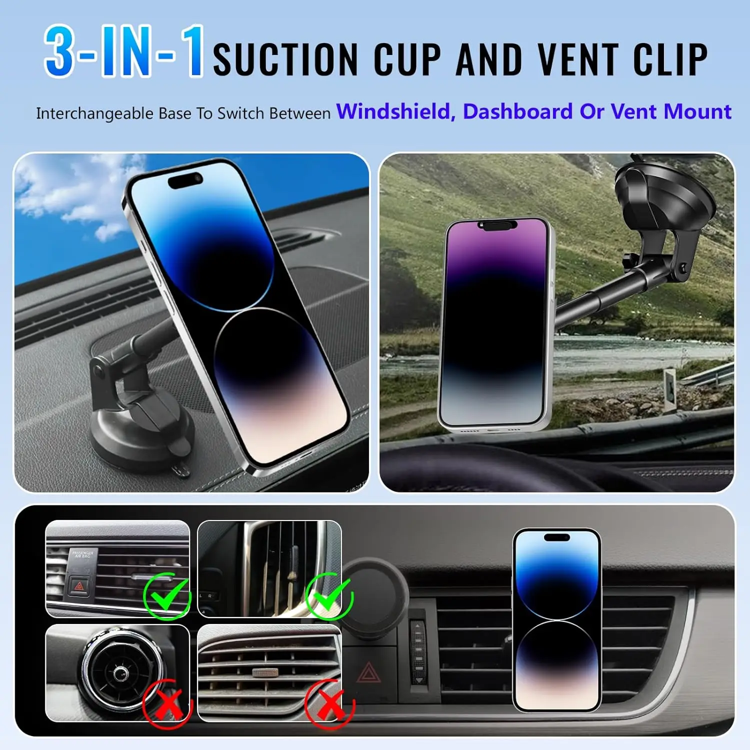 UYUXIO Car Mount Charger Dash Windshield Wireless Car Charger Strong Magnetic Phone Holder for iPhone 16 15 14 13 12 Series