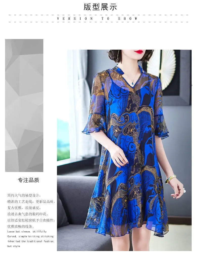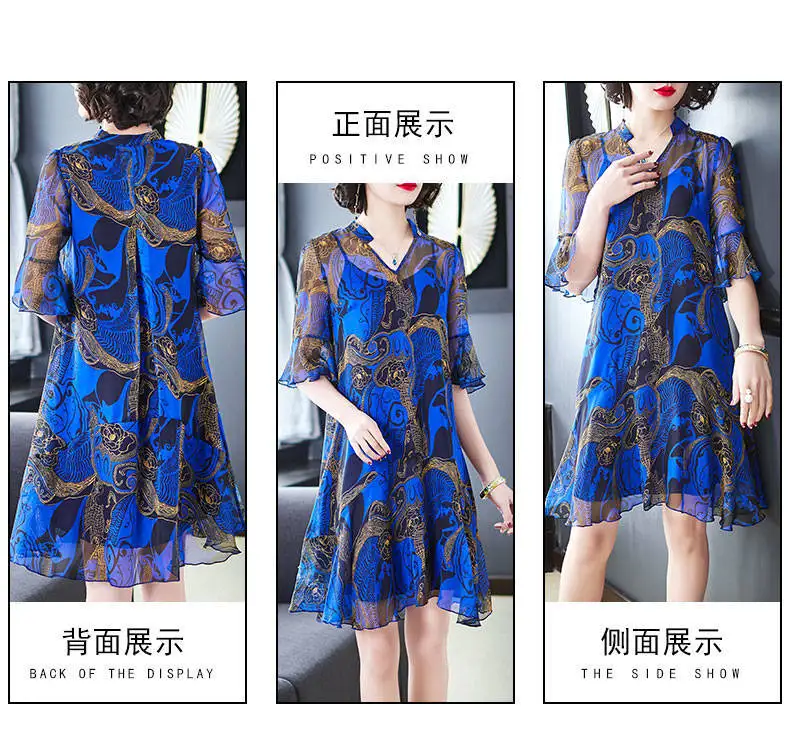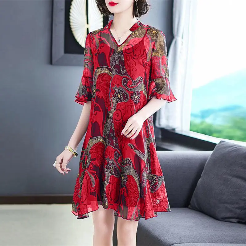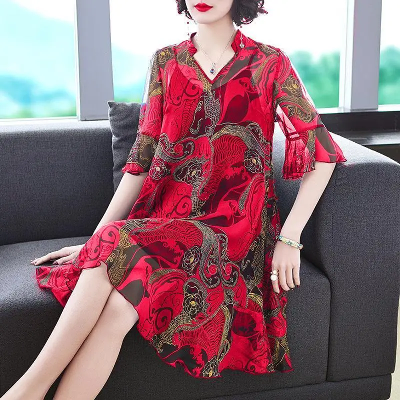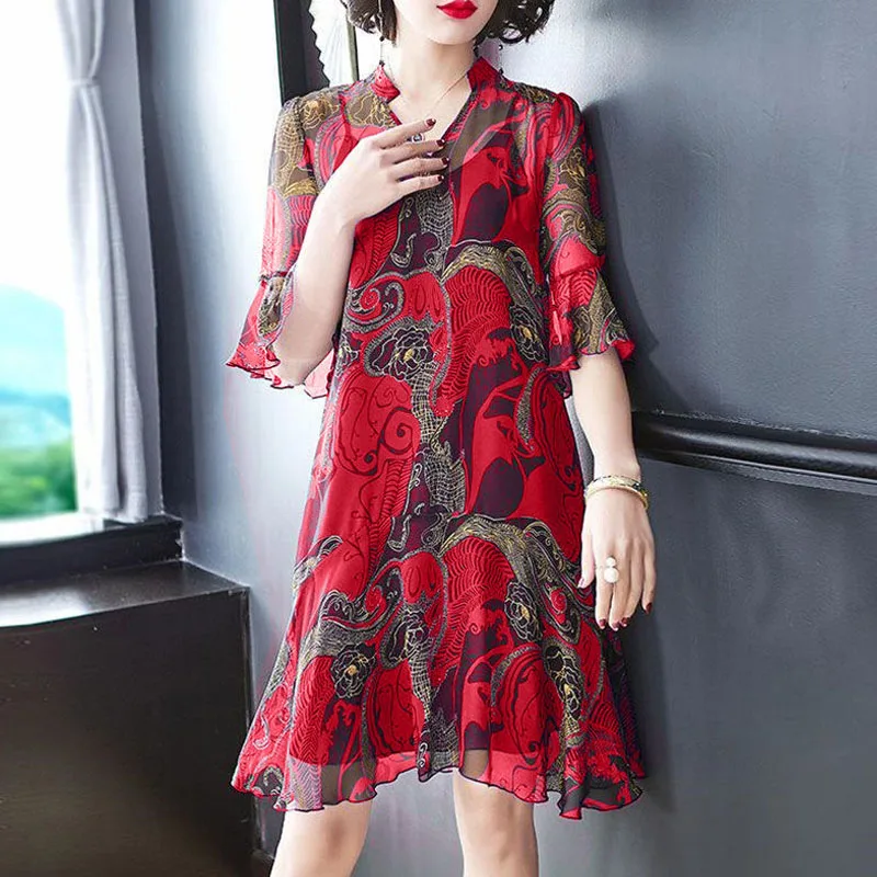 V-Neck Flare Sleeve Ladies Printing Dress 2023 Summer Women’s Clothing New Casual Commute Fashion