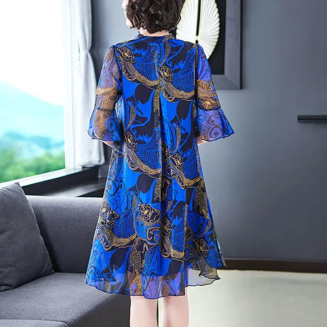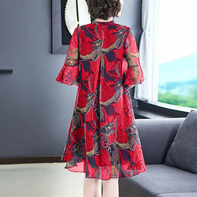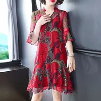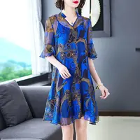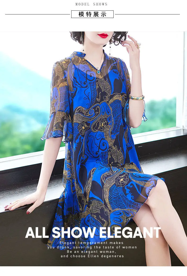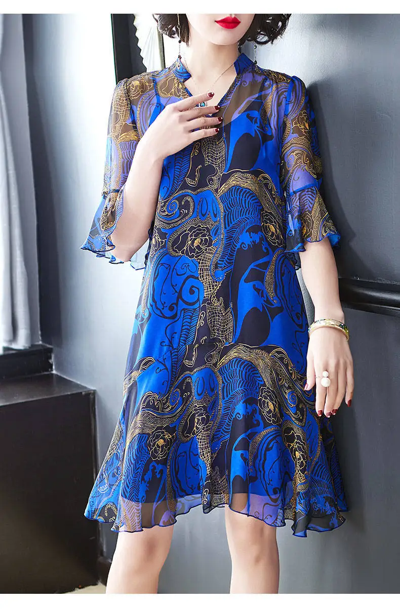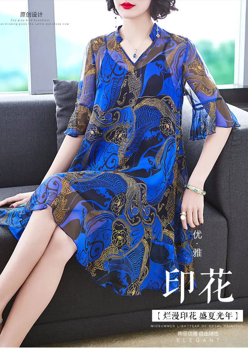 V-Neck Flare Sleeve Ladies Printing Dress 2023 Summer Women’s Clothing New Casual Commute Fashion