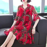 Women Short Sleeve Boho Maxi Dress Vintage Elegant Fashion Casual Print Floral V-Neck Loose Ladies Holiday Beach Party Vestidos