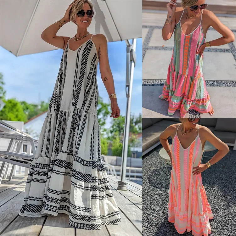 • Versatile Design : Featuring a V-neck and loose waistline, this dress is perfect for various occasions, from casual outings to formal events.