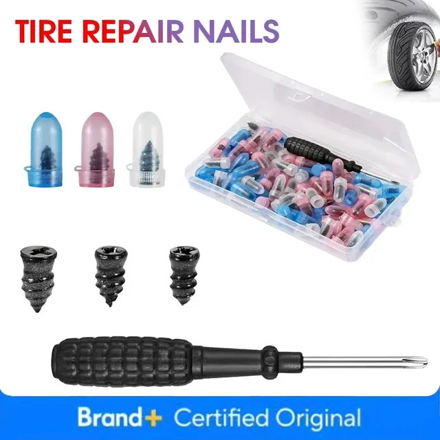 Three sizes of car tire repair kits: 5.3 * 12mm, 6 * 12mm, and 6.8 * 12mm, equipped with installation screwdrivers, are neatly stored in plastic boxes and are suitable for most road emergency tire damage situations.