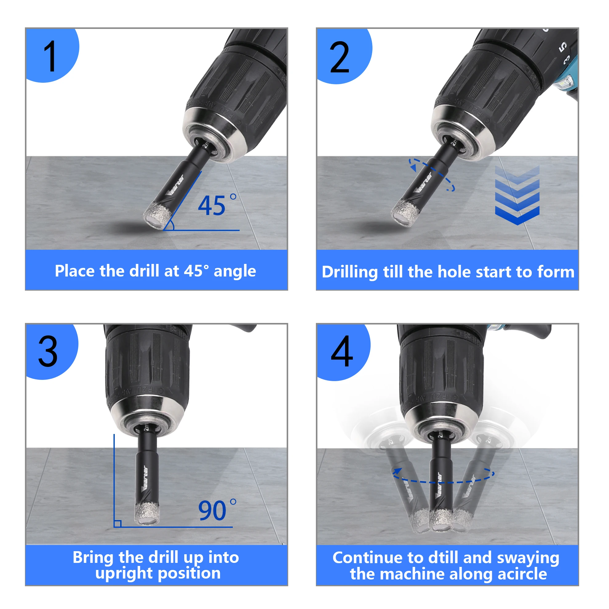 For drilling granite,marble, masonry, concrete, tile,ceramic, glass, hard plastic…..