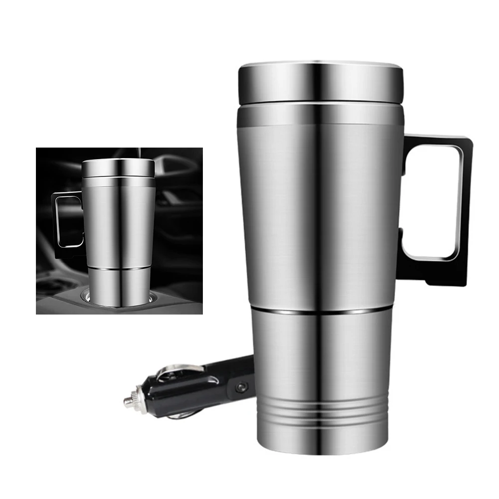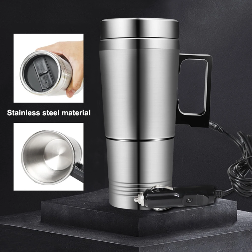 Electric Heating Car Kettle 12V/24V Camping Travel Kettle Stainless Steel Water Coffee Milk Thermal Mug Car Electric Heating Cup