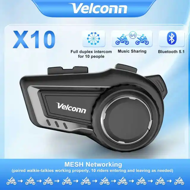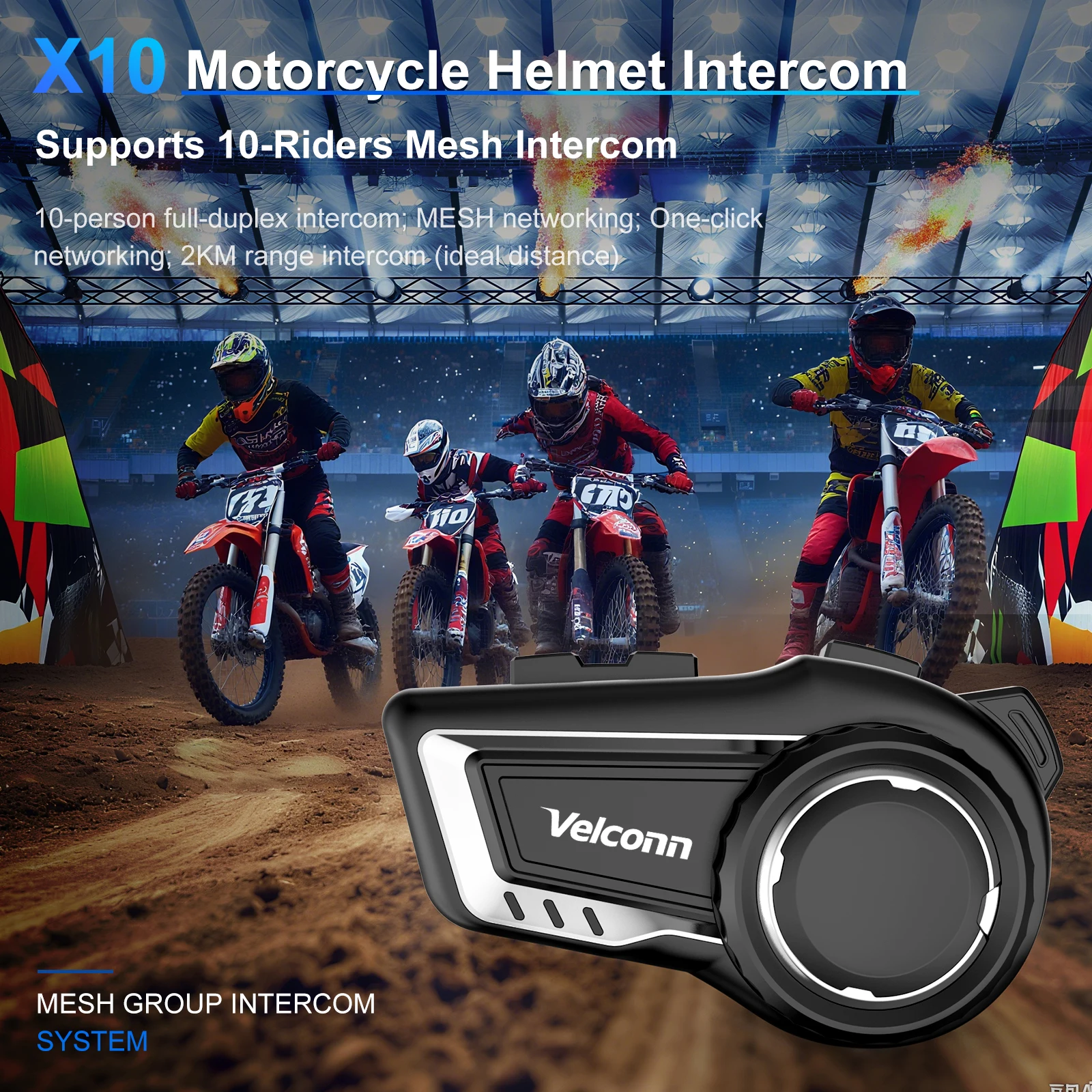 Velconn X10 Motorcycle Mesh Intercom Helmet Headset Bluetooth 5.1 For 10 Riders 1500M Full Duplex Interphone Music Sharing/EQ FM