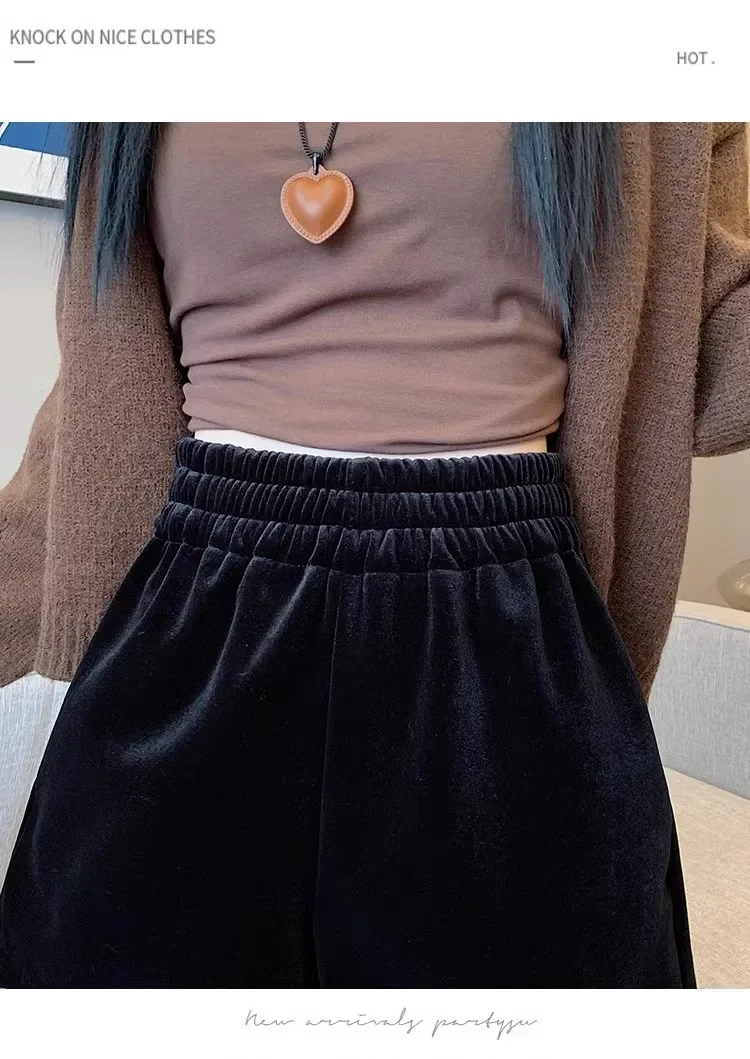 Velvet Wide Leg Shorts Women's Outerwear Autumn Winter New Elastic Waist Fashionable Black Slimming Boot Pants