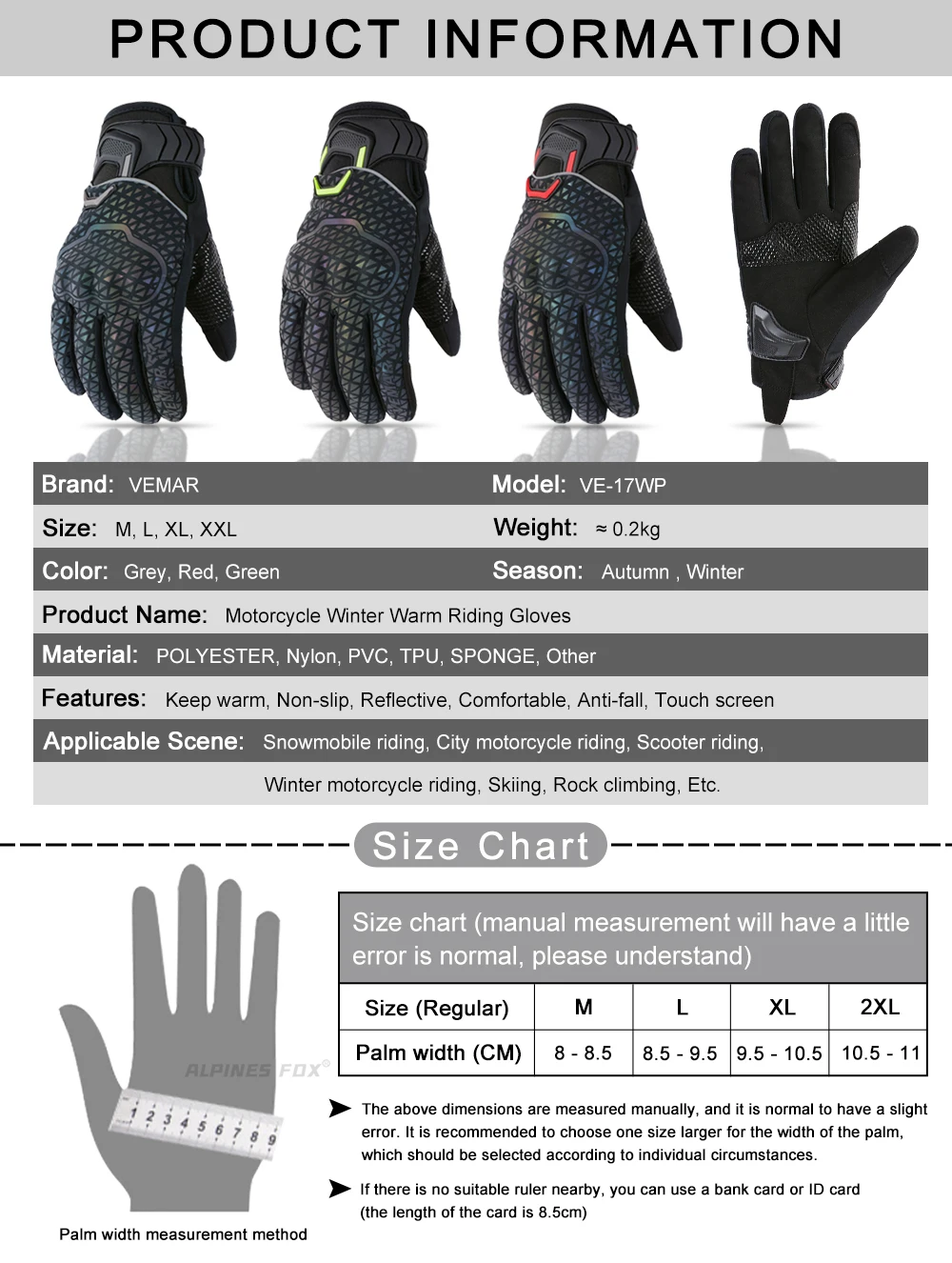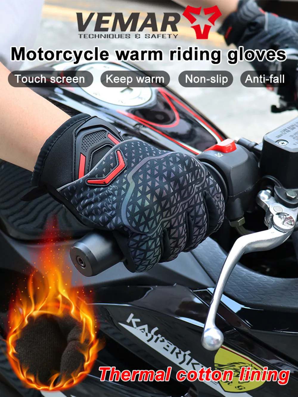 VEMAR Motorcycle Gloves Man Touch Screen Winter Warm Waterproof Windproof Protective Gloves Guantes Moto Luvas Motosiklet Eldiveni