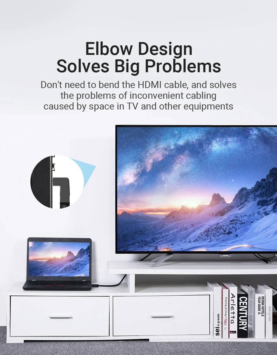 Don’t need to bend the HDMI cable,and solves