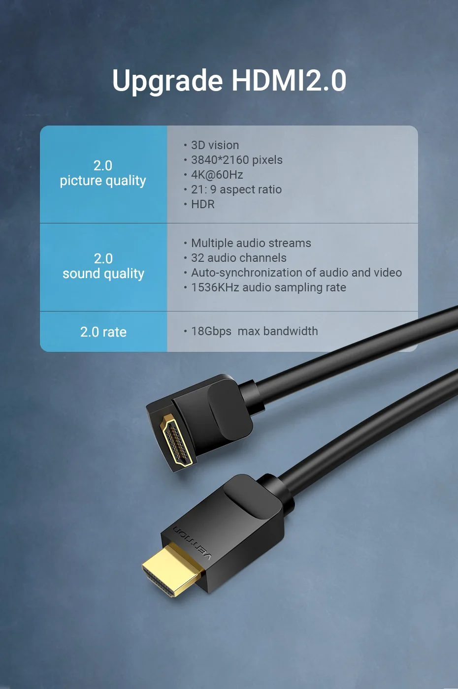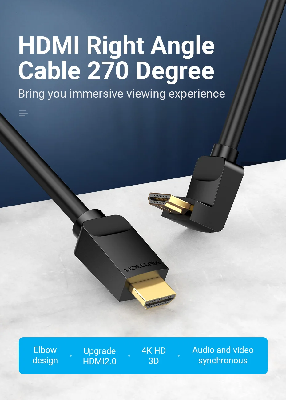 Vention 4K HDMI Cable HDMI 2.0 Cable HDMI 90/270 Degree Angle Adapter for Apple TV PS4 Splitter Video
