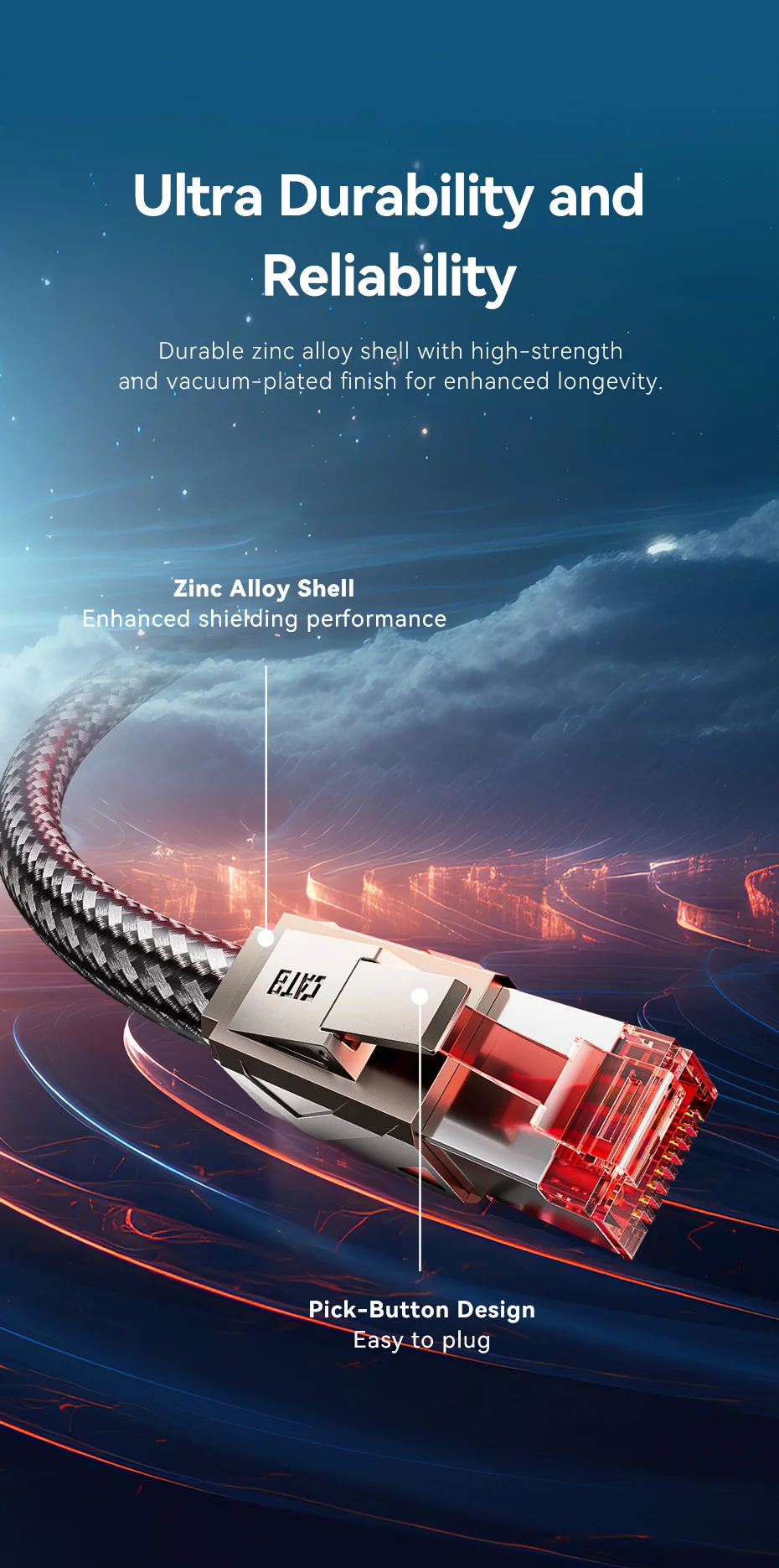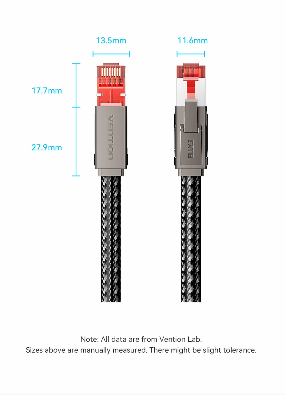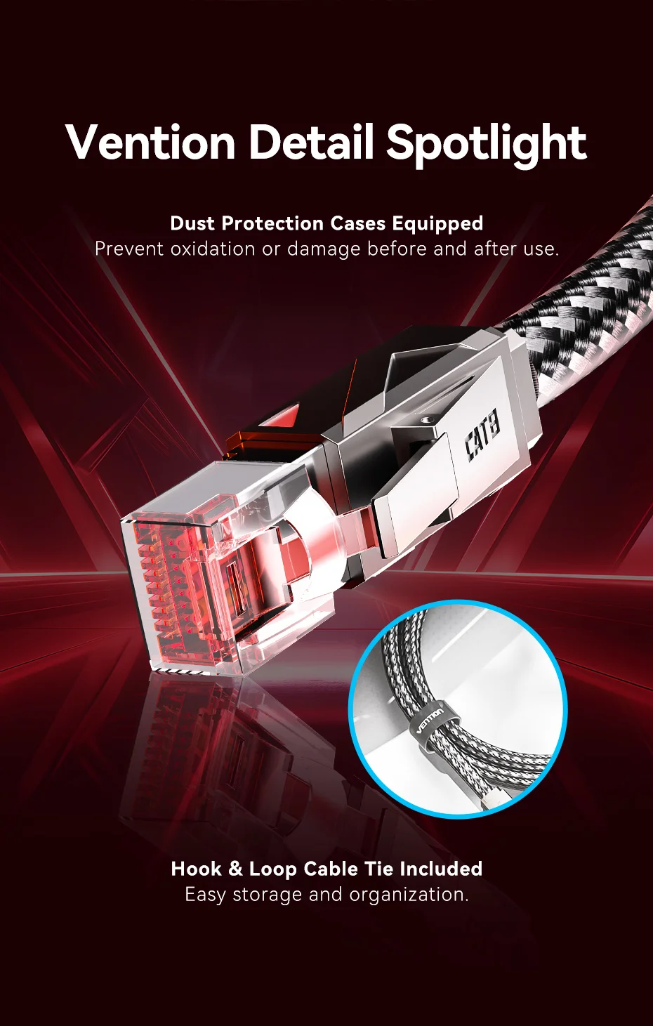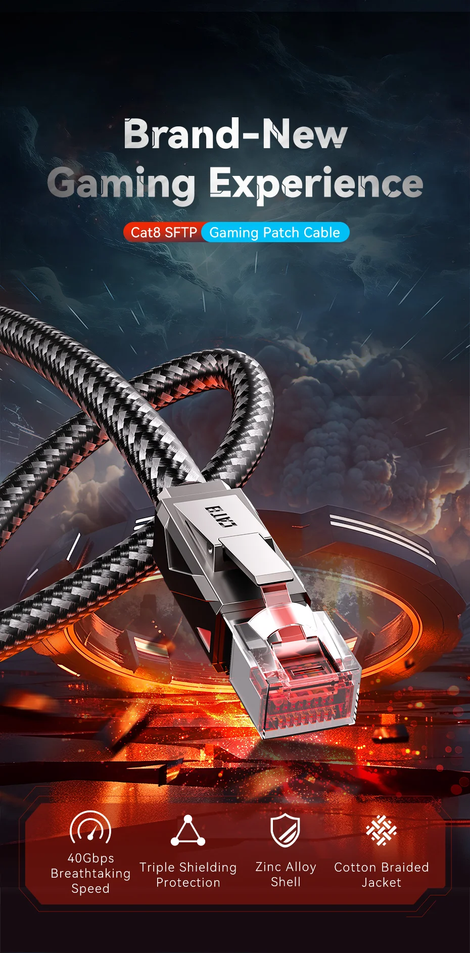 UGOURD Classic Black-gray Cat8 High Speed Internet Cable 40Gbps 2000MHz Bandwidth RJ45 Network LAN Cat 8 Ethernet Cable No Lag