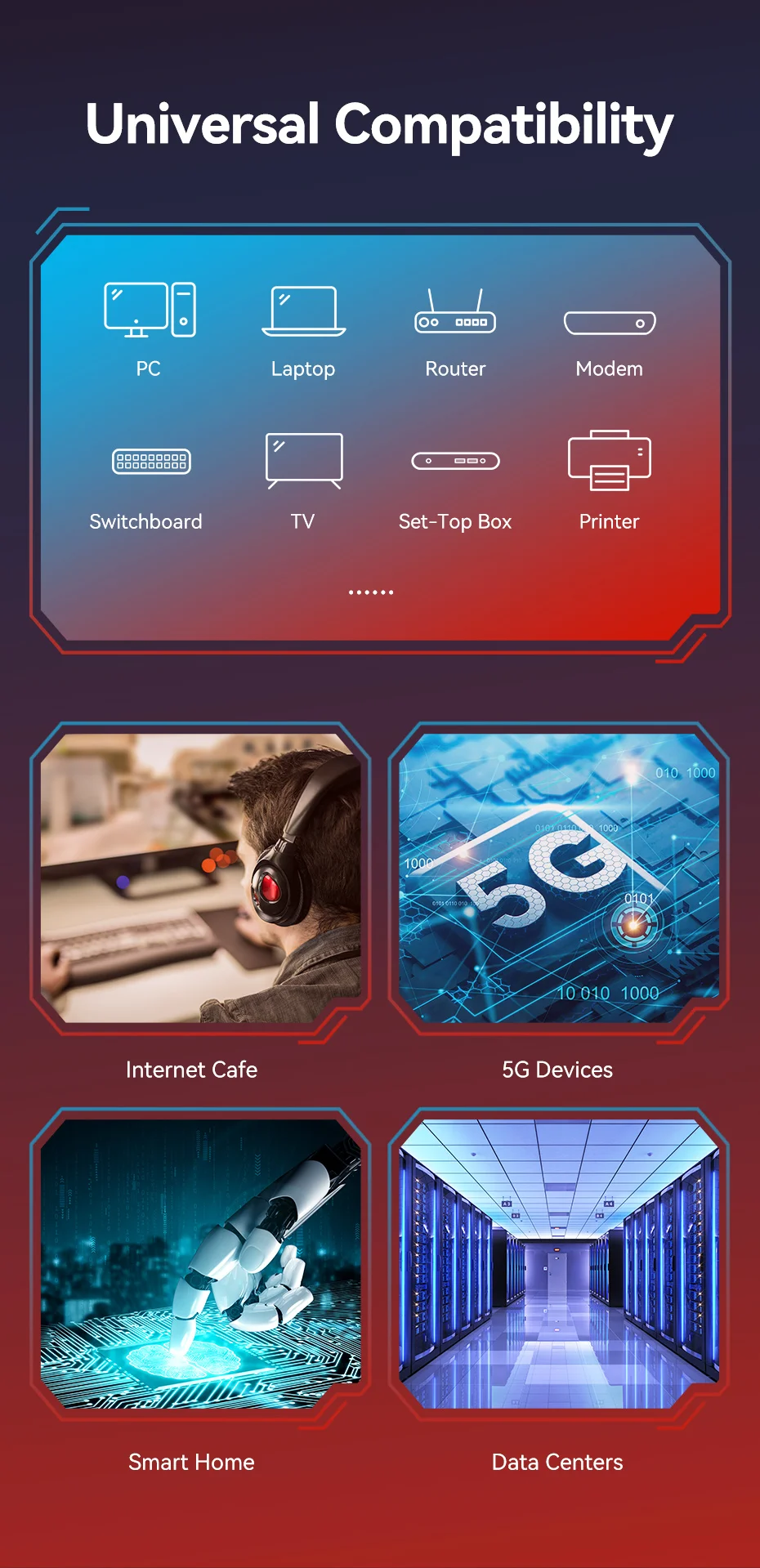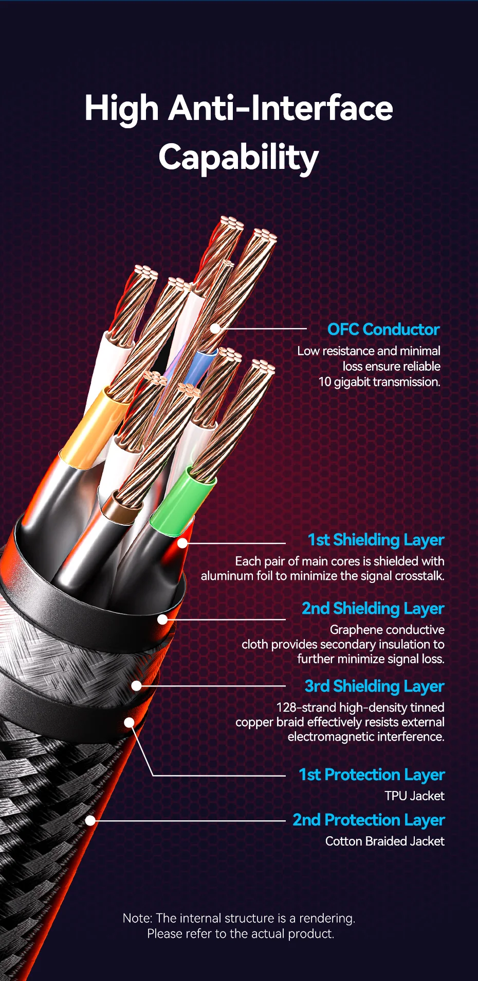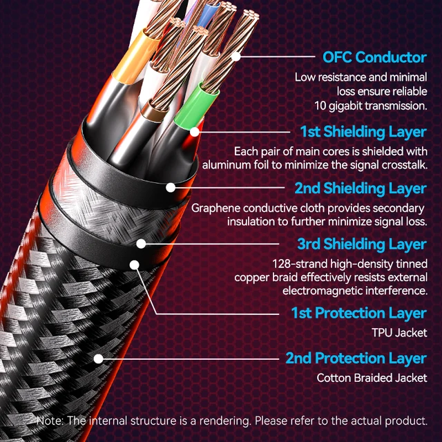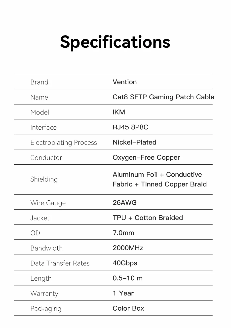 UGOURD Classic Black-gray Cat8 High Speed Internet Cable 40Gbps 2000MHz Bandwidth RJ45 Network LAN Cat 8 Ethernet Cable No Lag