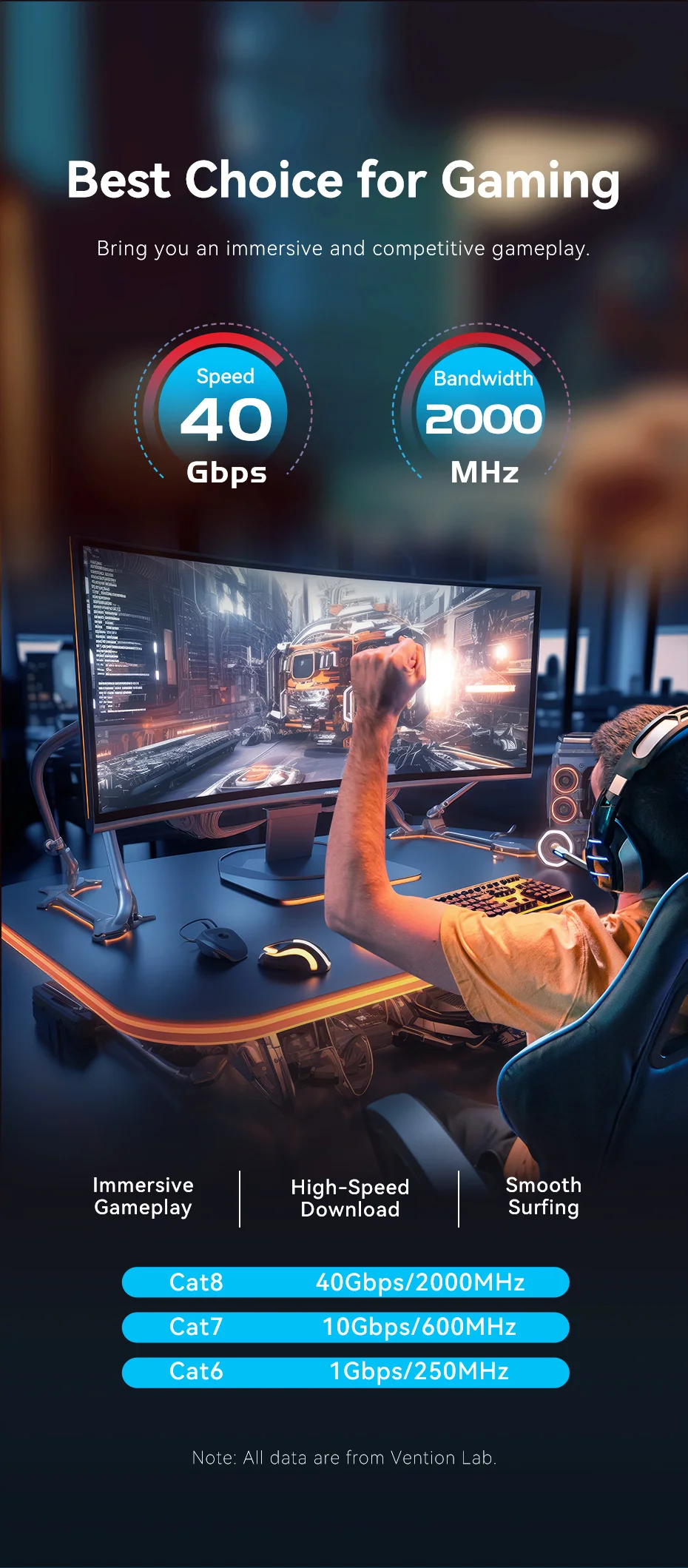 HENGSUR CAT8 Ethernet Cable 40Gbps 2000MHz RJ45 10M 20M 30M Network Internet Patch Cord for Modem Router Cable Ethernet CAT 8