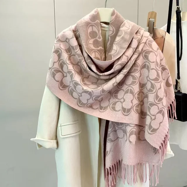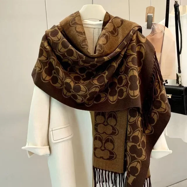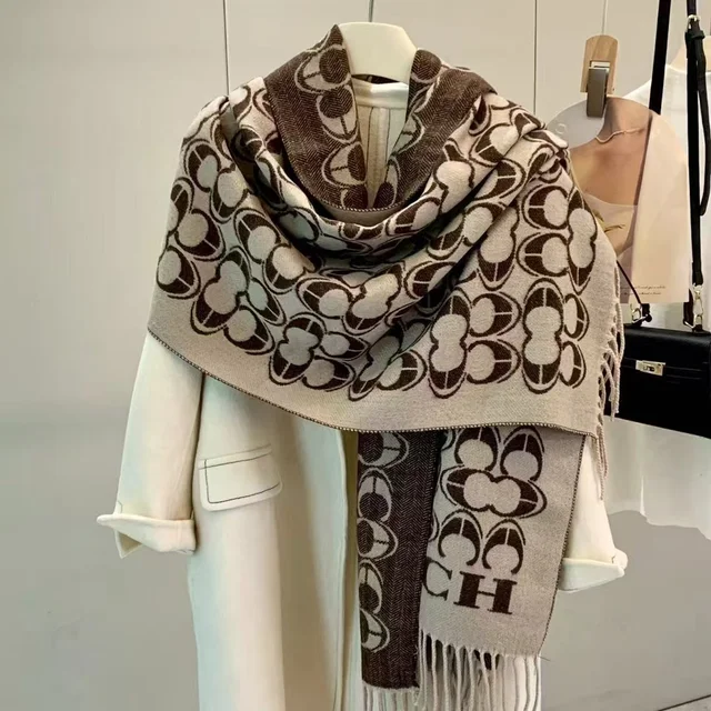 The scarf incorporates trendy letter elements, adding a touch of sophistication to your look. Its fashion-forward design ensures you stay on-trend this winter.