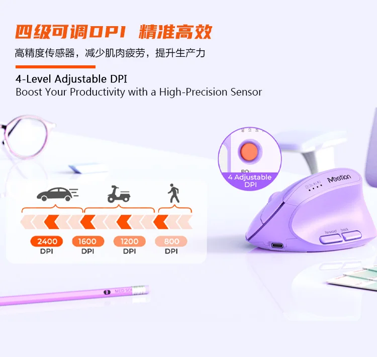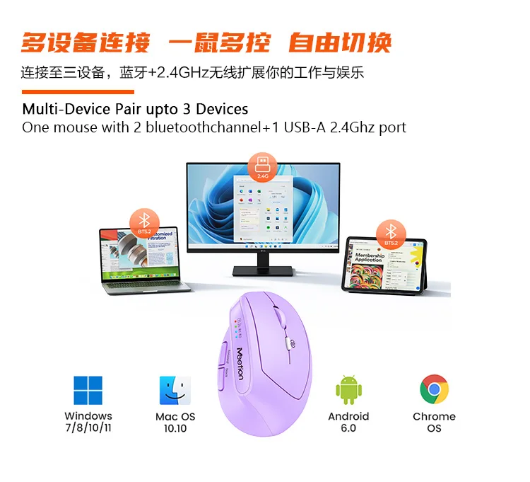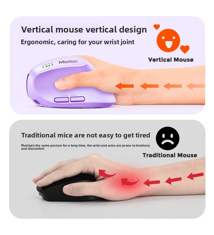 Vertical Mouse Wireless 2.4G Bluetooth Multi-Device Ergonomic Rechargeable 2400DPI Mice for Tablet Laptops