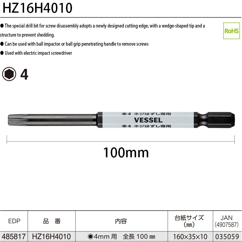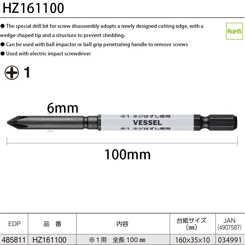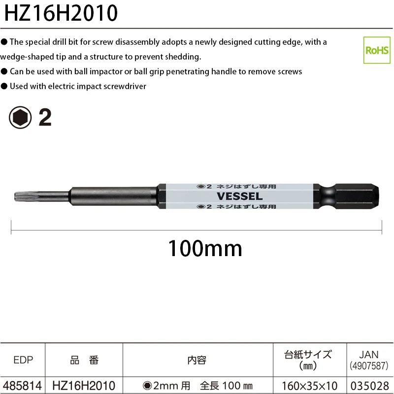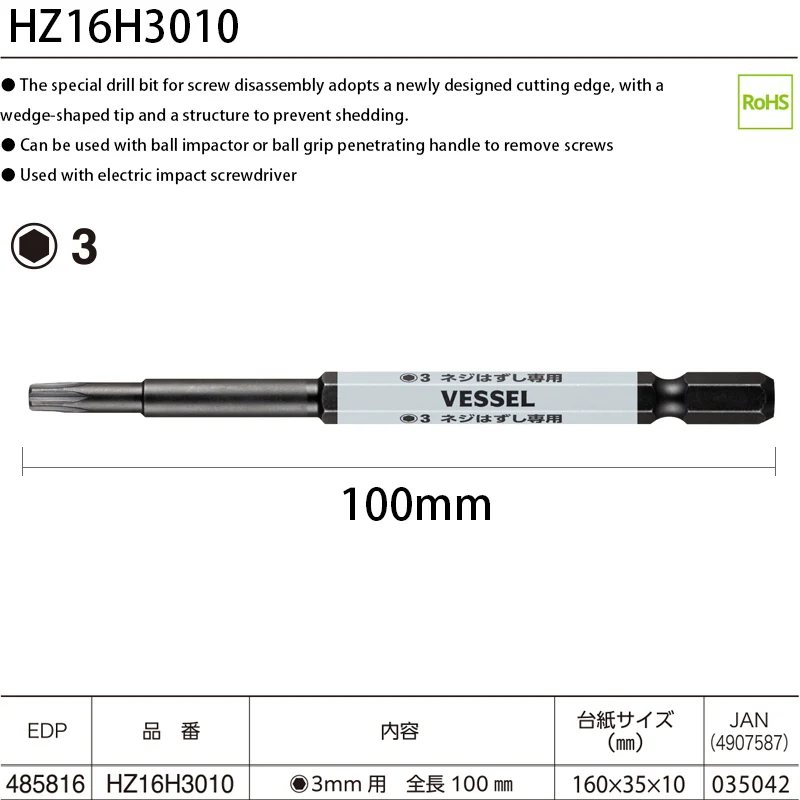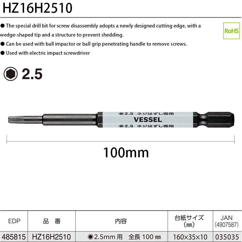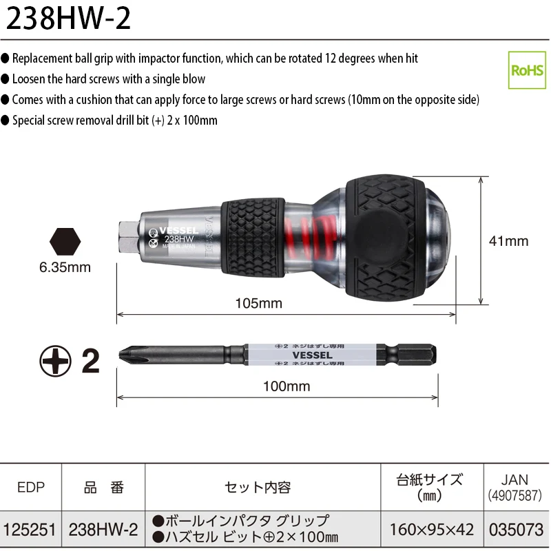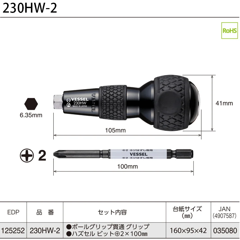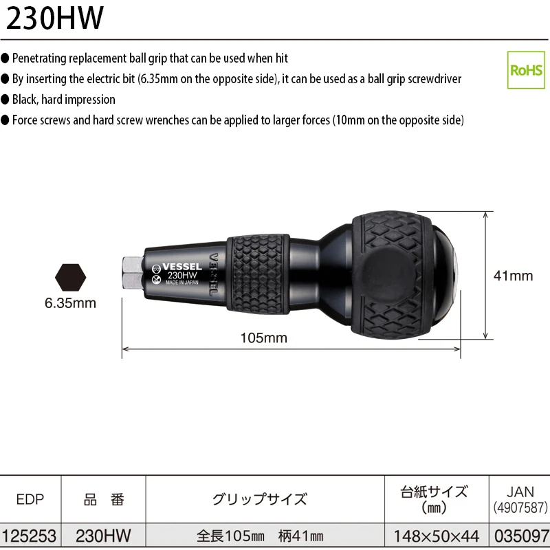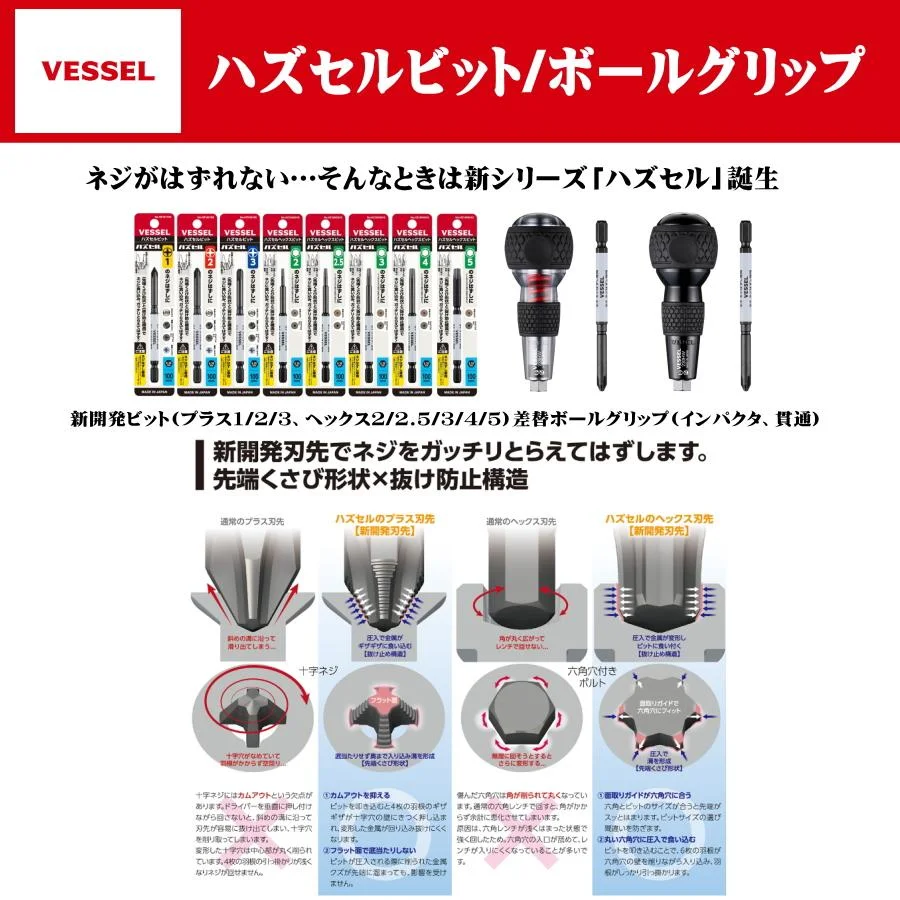 Compatibility with a 6.35mm hex drive bit enables to be used as a familiar ball grip screwdriver