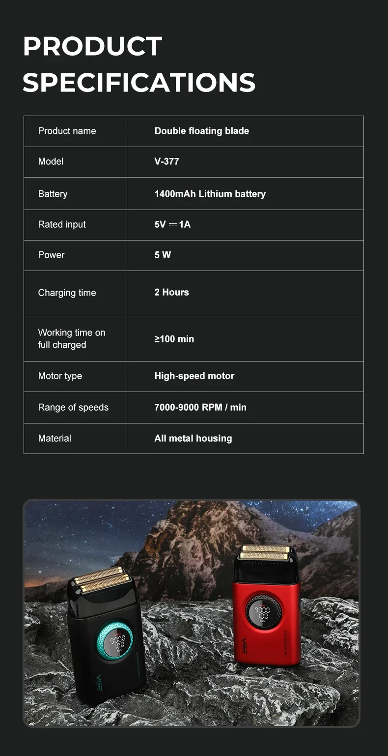 4.LED Digital Display for Time:The integrated LED digital display keeps you informed of the shaving time, allowing you to monitor your progress and ensure an even, balanced shave. This feature adds a touch of modern convenience to your grooming routine.